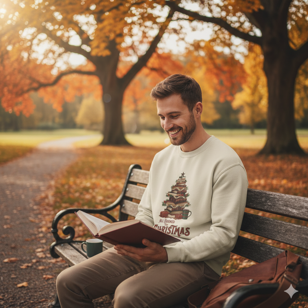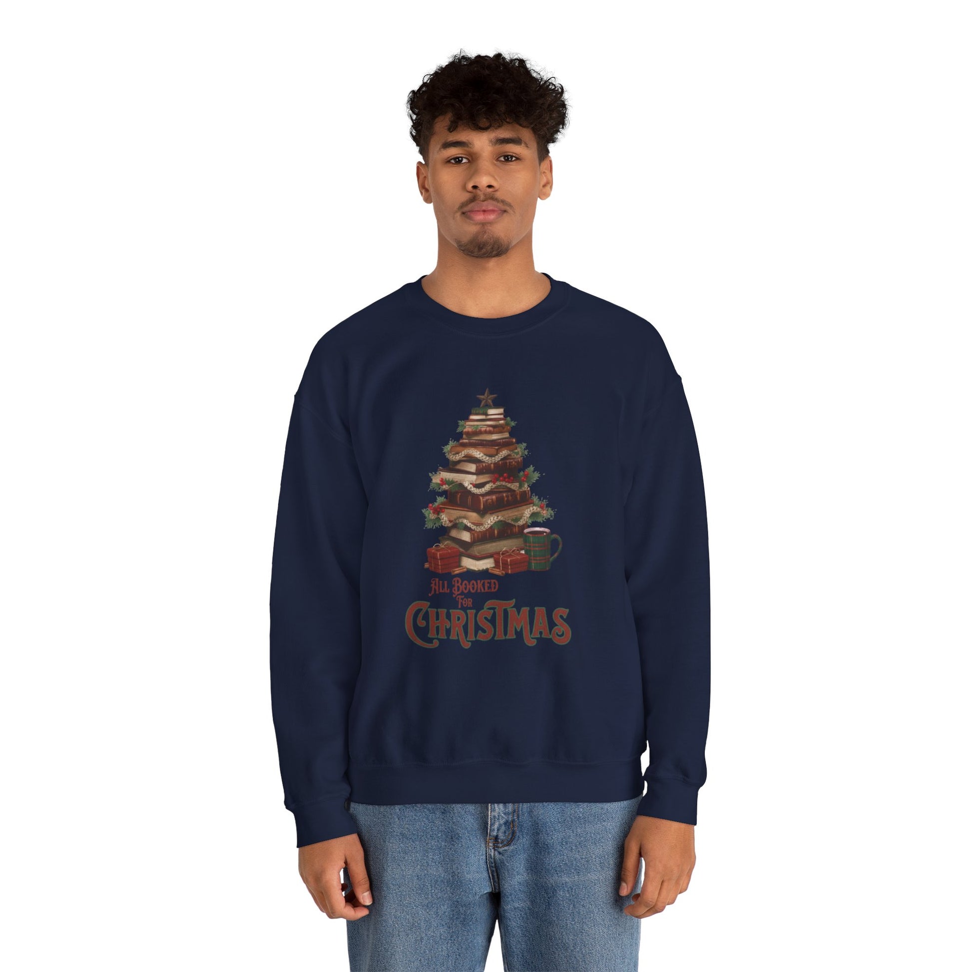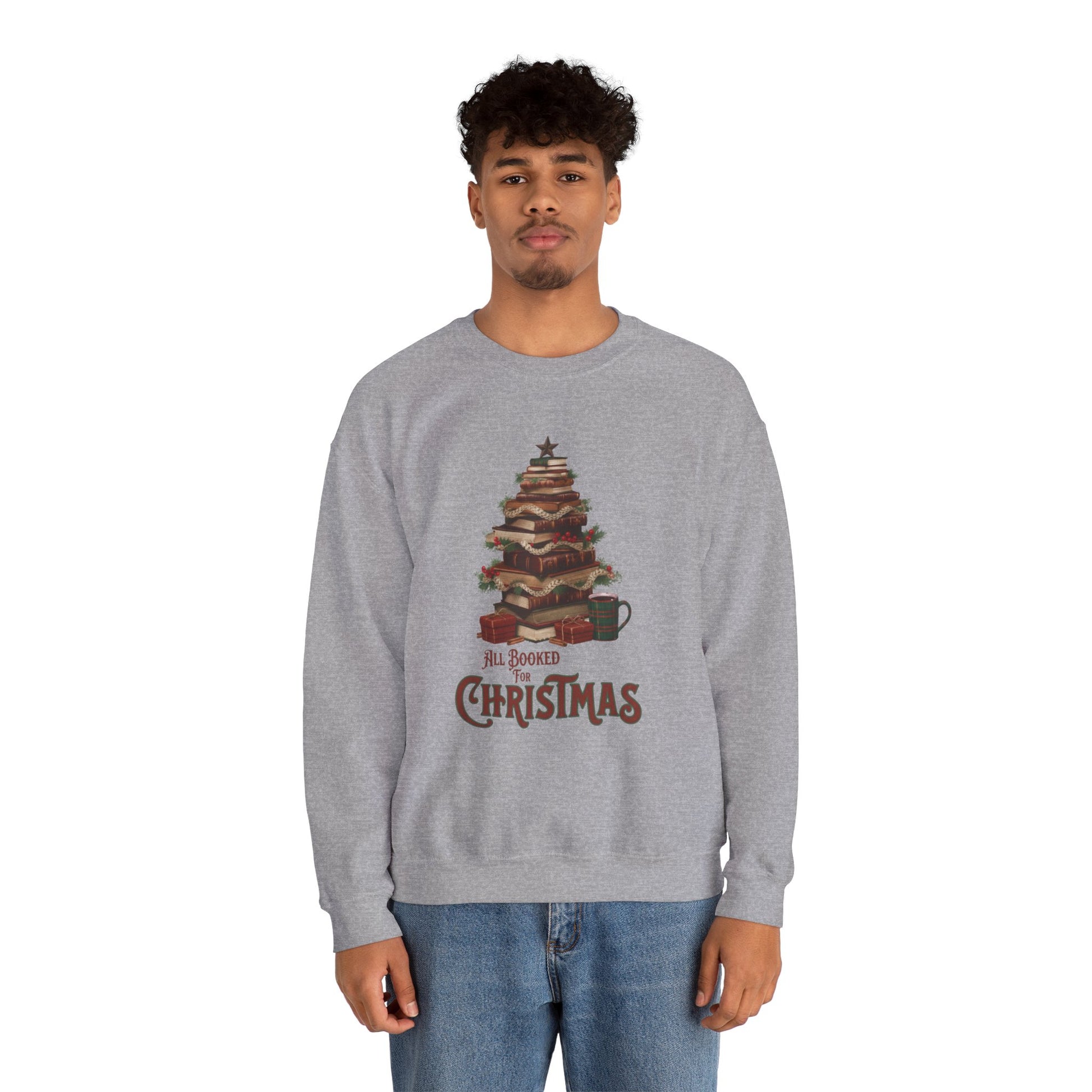 All Booked Christmas Sweatshirt, Cozy Holiday Wear, Gift for Book Lovers, Winter Apparel, Festive Crewneck