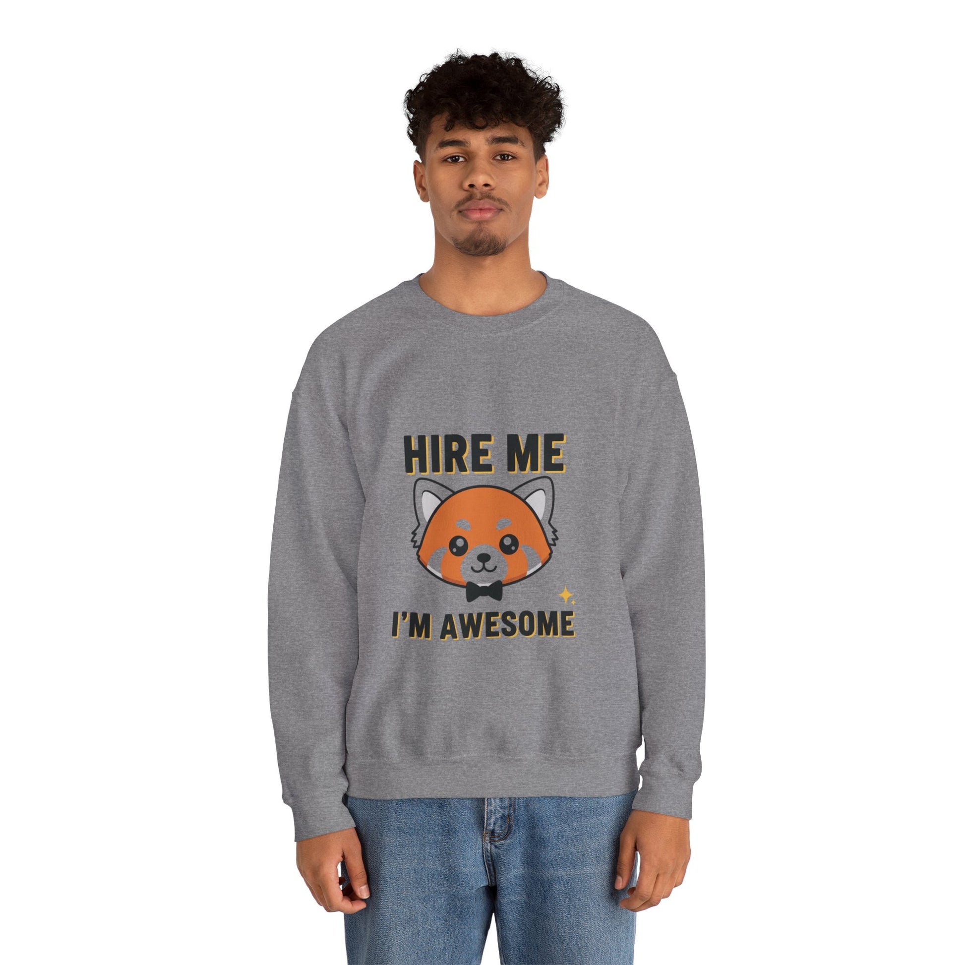Awesome Hire Me Crewneck Sweatshirt, Funny Job Sweatshirt, Gift for Job Seekers, Casual Wear, Unisex Sweatshirt, Cute Animal Design