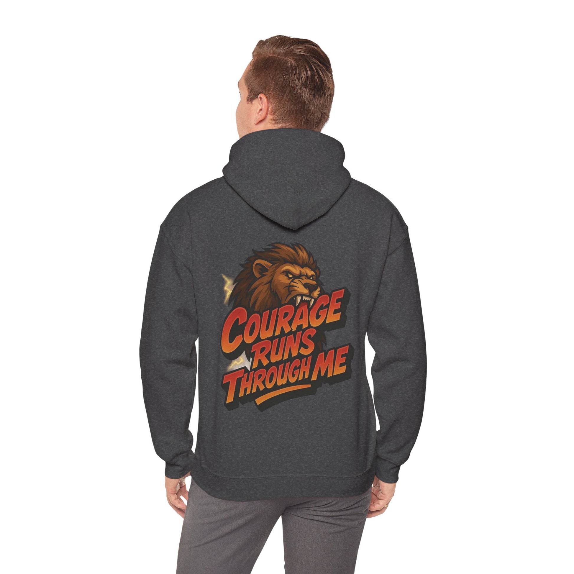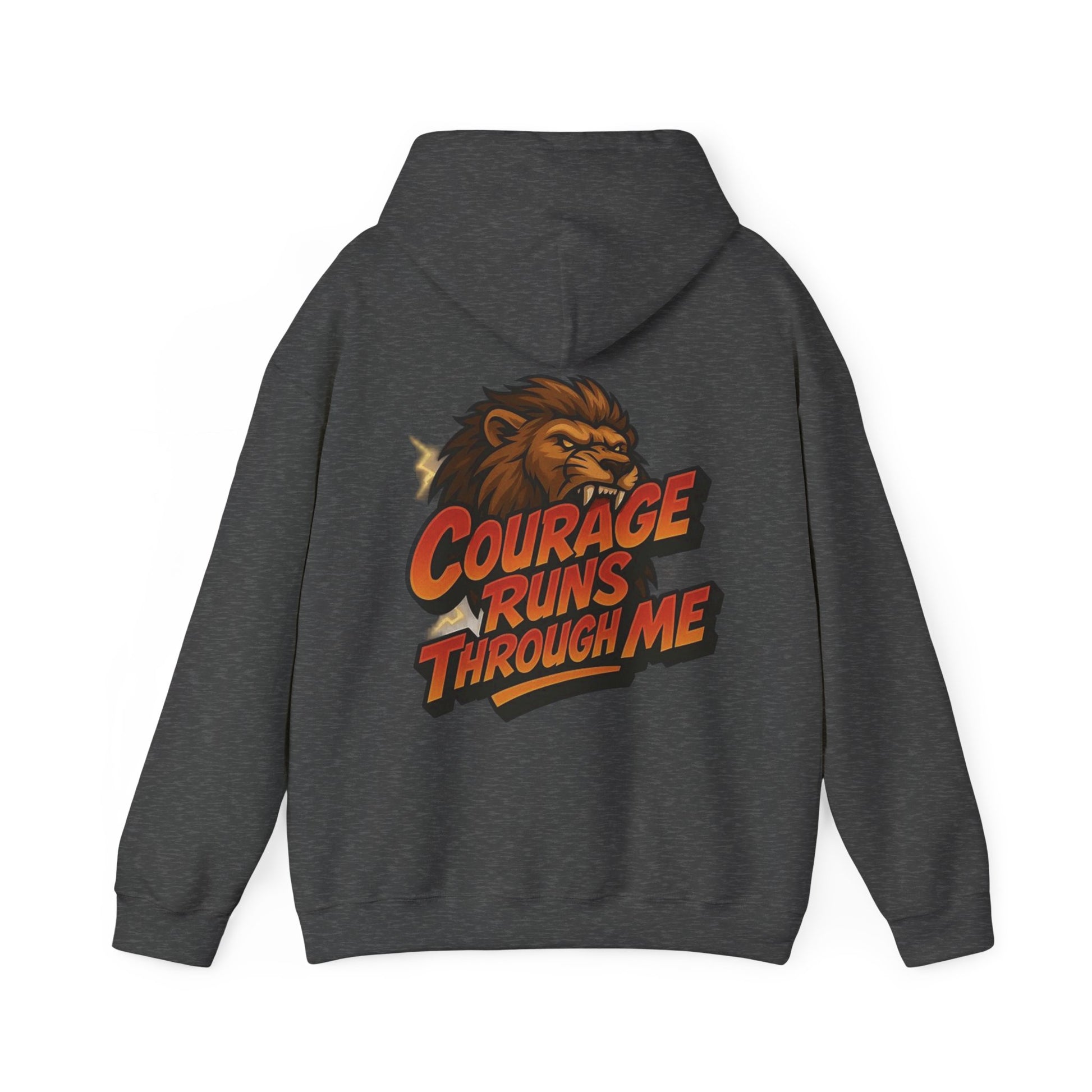 Courage Runs Through Me Hoodie - Unisex Heavy Blend Sweatshirt, Cozy Gift for Motivational Living, Perfect for Workout.