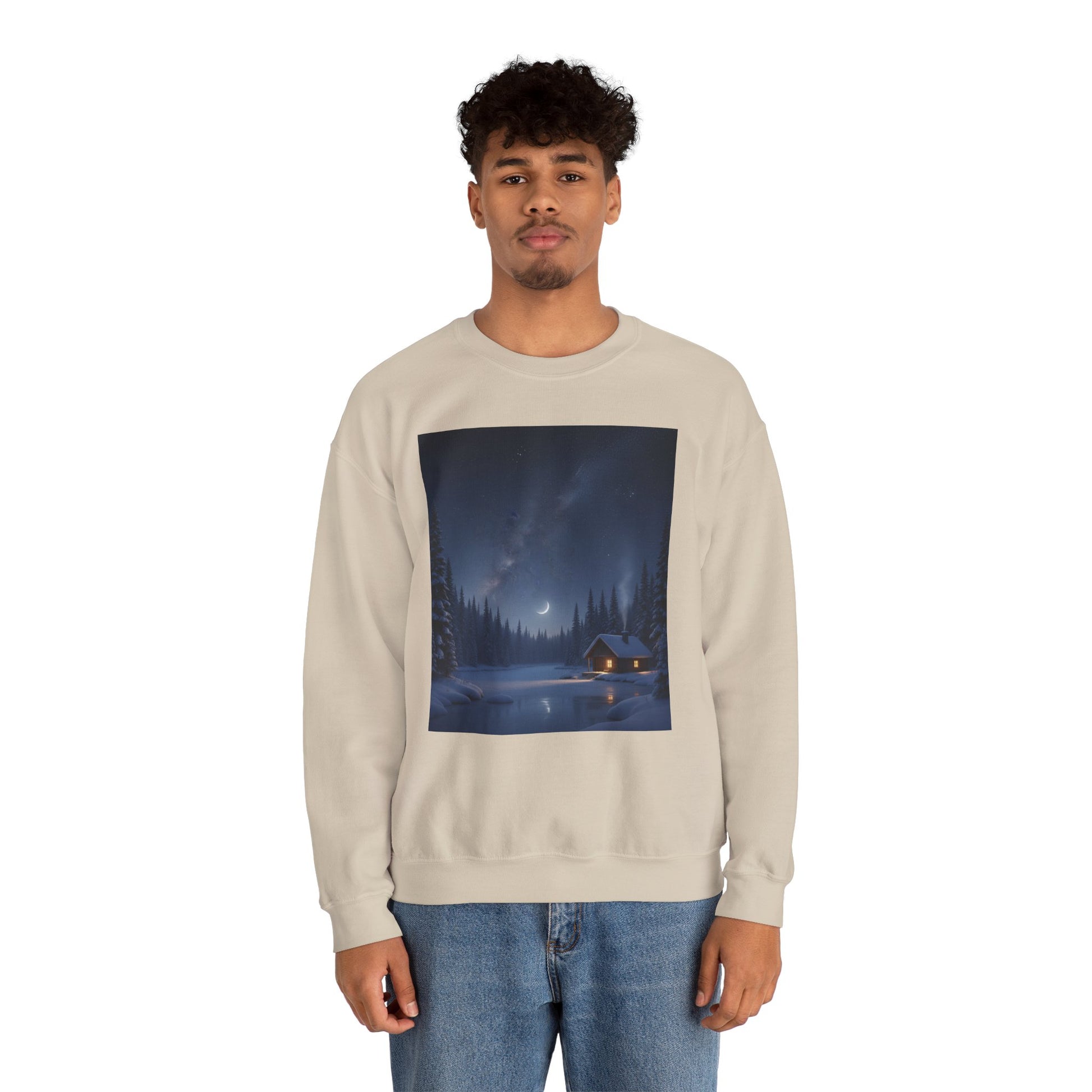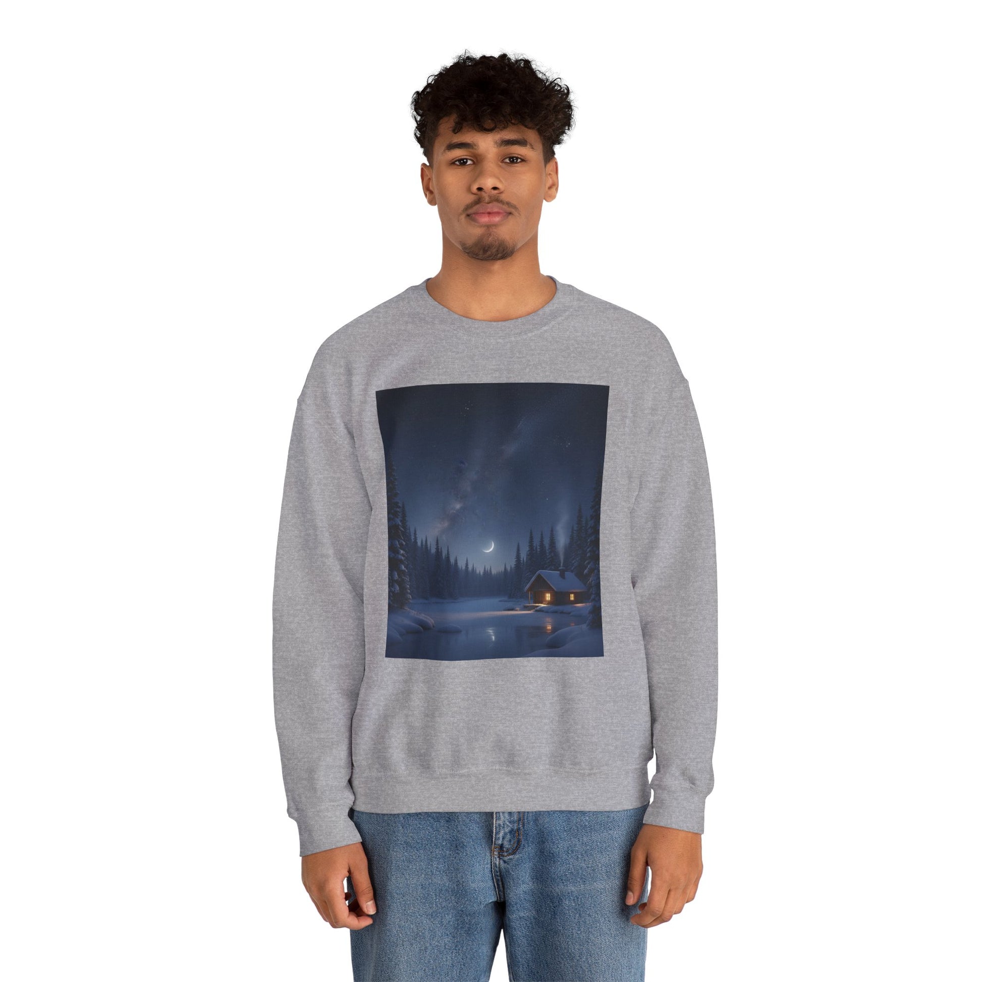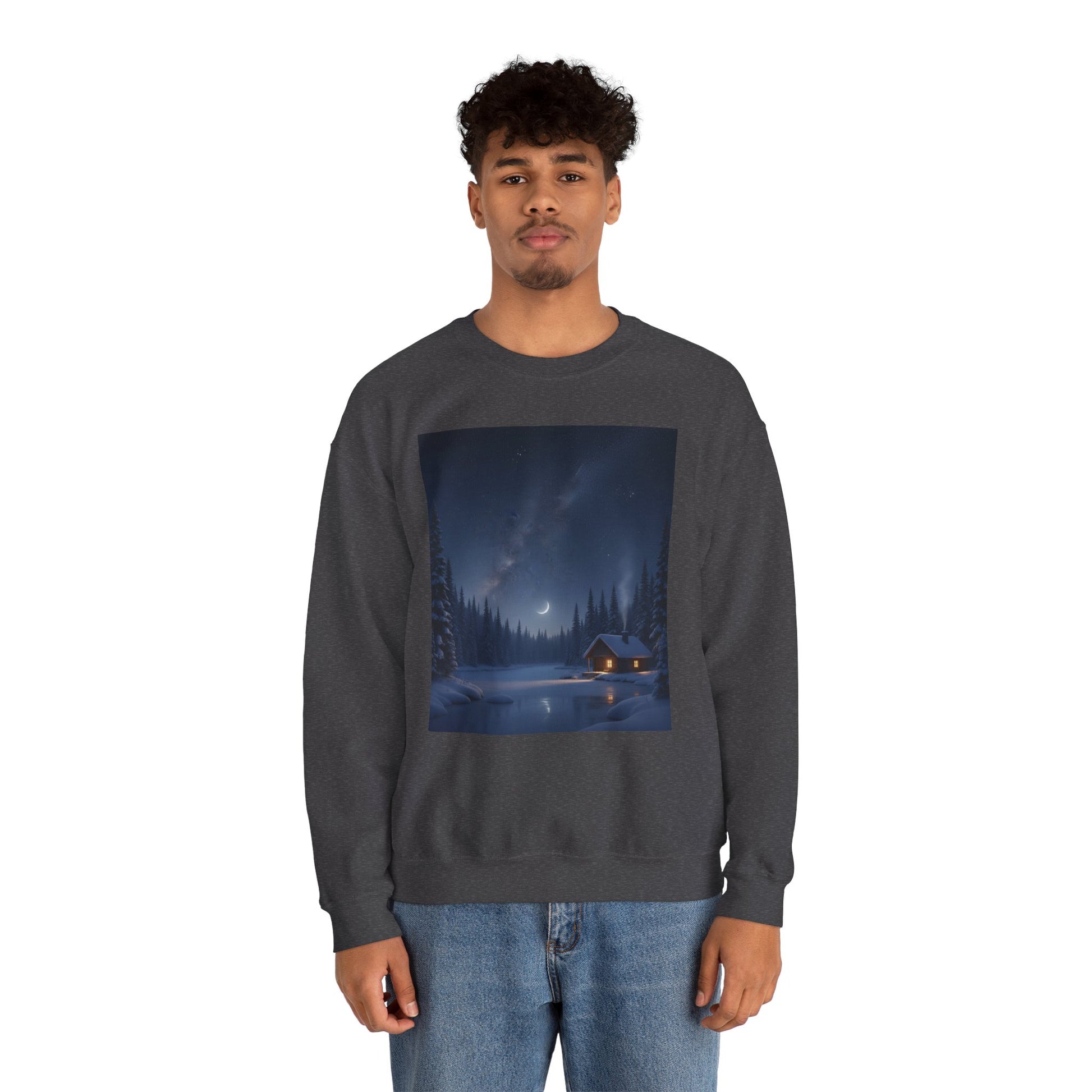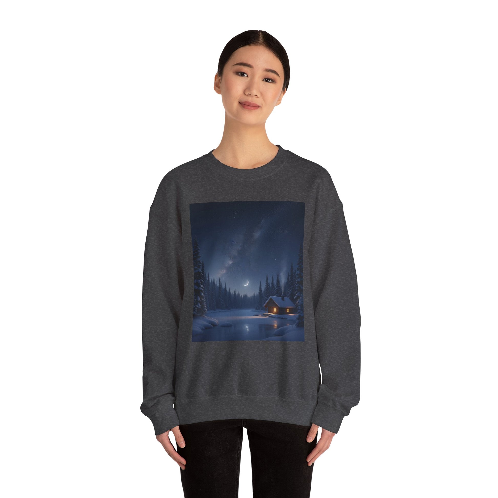 Embrace cozy comfort with this unisex heavy blend crewneck sweatshirt, perfect for chilly evenings by the fire or casual outings with friends. The serene design evokes a peaceful winter night, making it a delightful addition to your wardrobe. Ideal for anyone who loves nature and tranquility, this sweatshirt fits seamlessly into your daily life, whether you're lounging at home or enjoying outdoor adventures. It’s a wonderful gift for holidays like Christmas, cozy gatherings, or for anyone seeking a unique piece that brings warmth and style to their look.