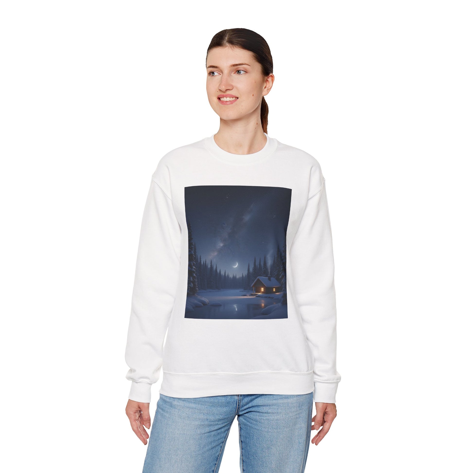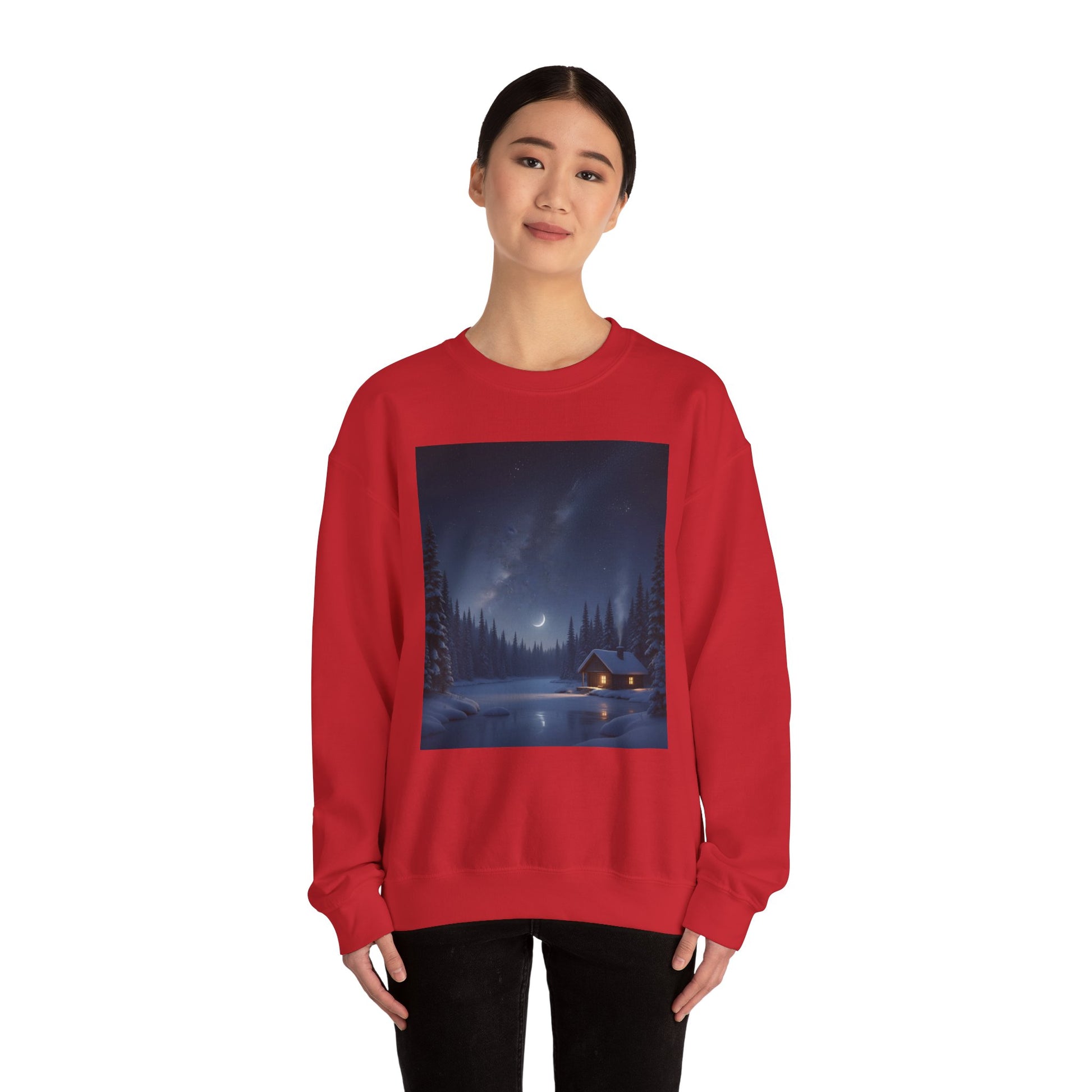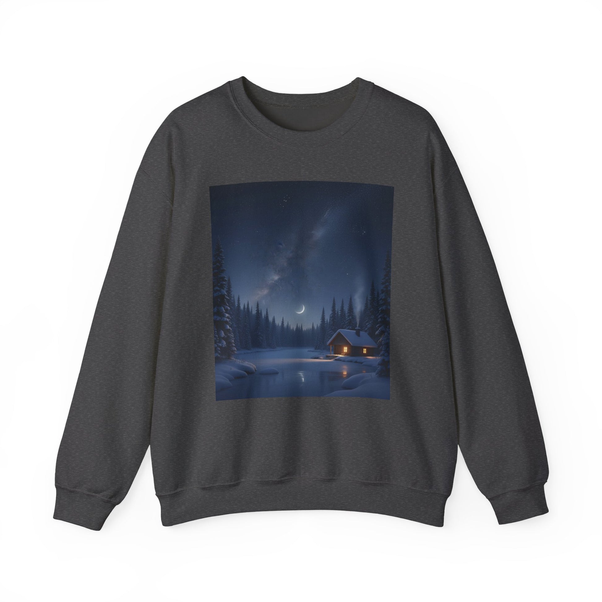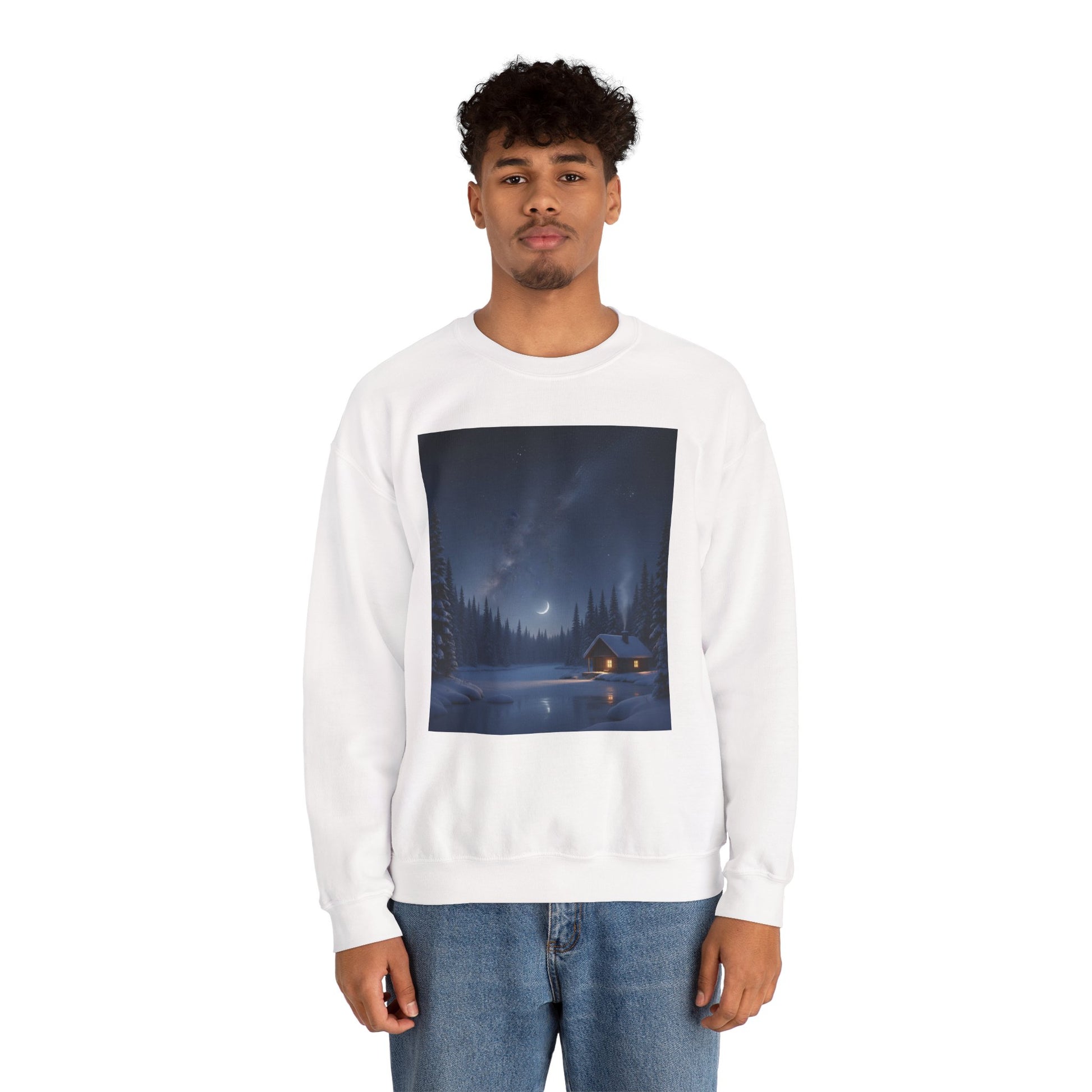 Embrace cozy comfort with this unisex heavy blend crewneck sweatshirt, perfect for chilly evenings by the fire or casual outings with friends. The serene design evokes a peaceful winter night, making it a delightful addition to your wardrobe. Ideal for anyone who loves nature and tranquility, this sweatshirt fits seamlessly into your daily life, whether you're lounging at home or enjoying outdoor adventures. It’s a wonderful gift for holidays like Christmas, cozy gatherings, or for anyone seeking a unique piece that brings warmth and style to their look.