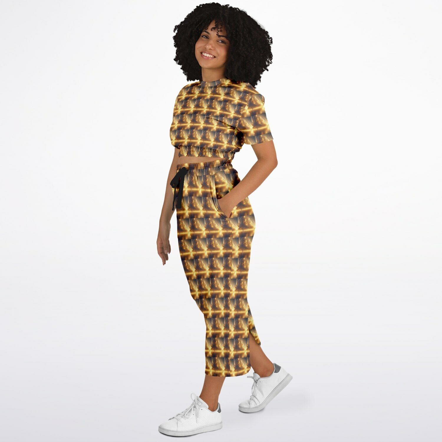 Fashion Cropped Short Sleeve Sweatshirt and Long Pocket Skirt Set – AOP