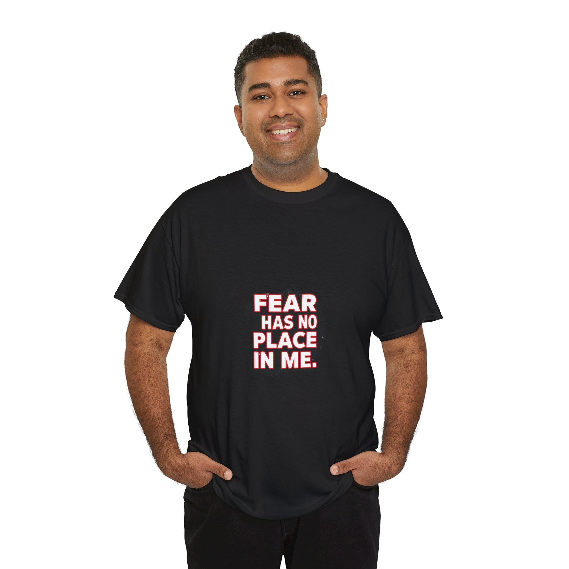 Experience comfort and style with this Unisex Heavy Cotton Tee, designed to inspire confidence and positive vibes. The bold message "FEAR HAS NO PLACE IN ME" makes it perfect for those looking to express strength and resilience. Ideal for casual outings, motivational events, or as a gift to a friend who needs a little inspiration, this tee fits seamlessly into anyone's wardrobe. Whether worn at home, during workouts, or out with friends, it reminds you to stay fearless. A great choice for birthdays, motivational celebrations, or just because!