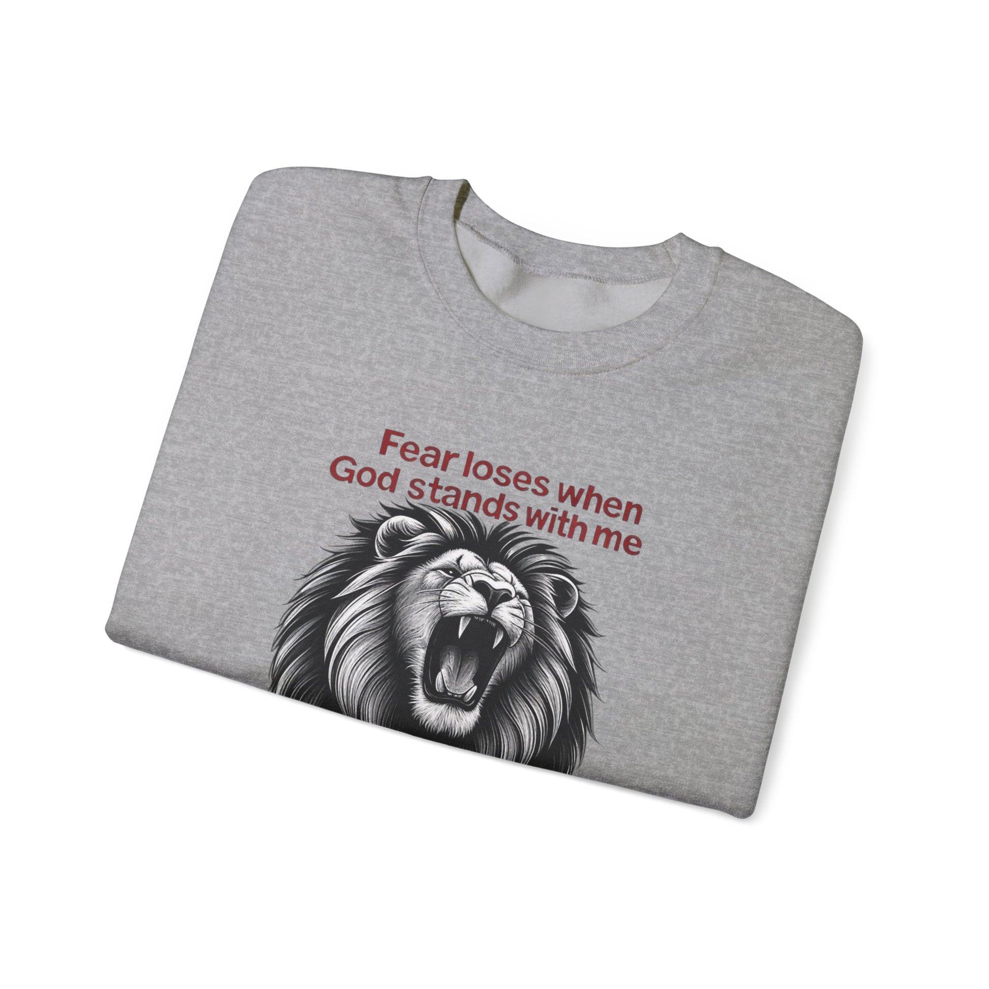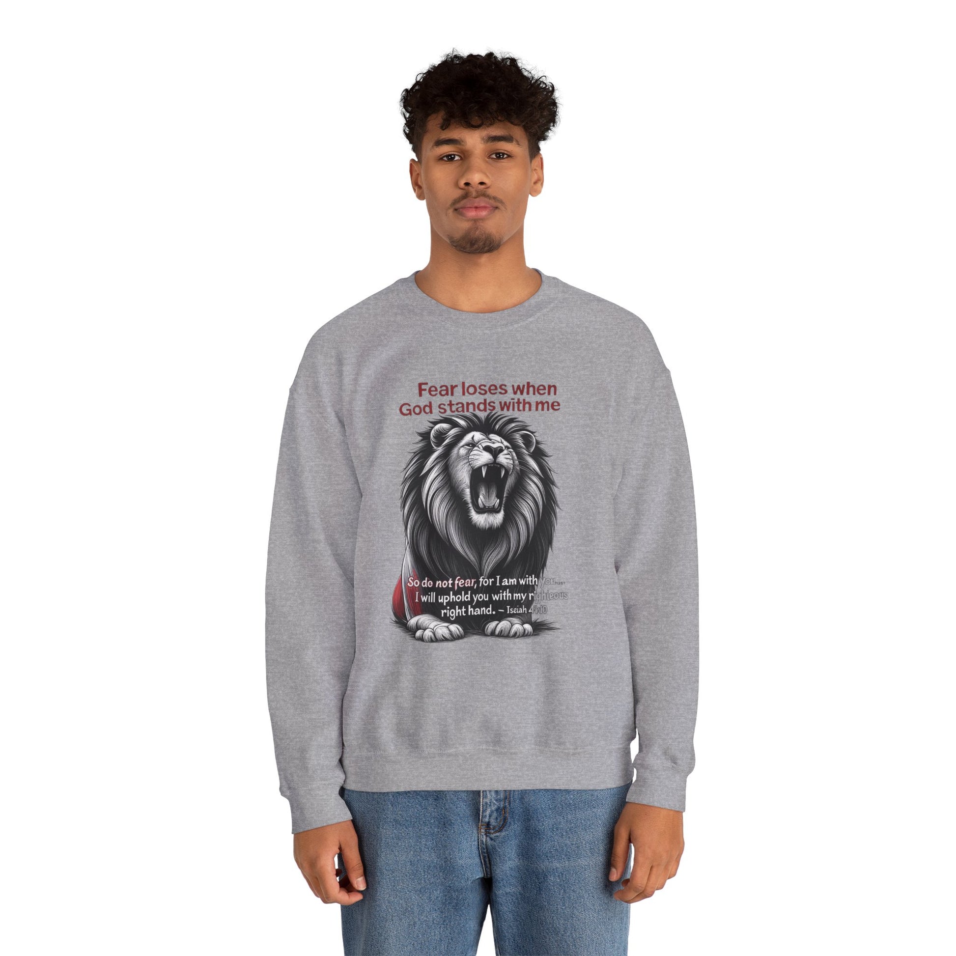 Fearless Lion Inspirational Crewneck Sweatshirt, Motivational Gift, Unisex Apparel, Cozy Sweatshirt, Christian Quote Sweatshirt
