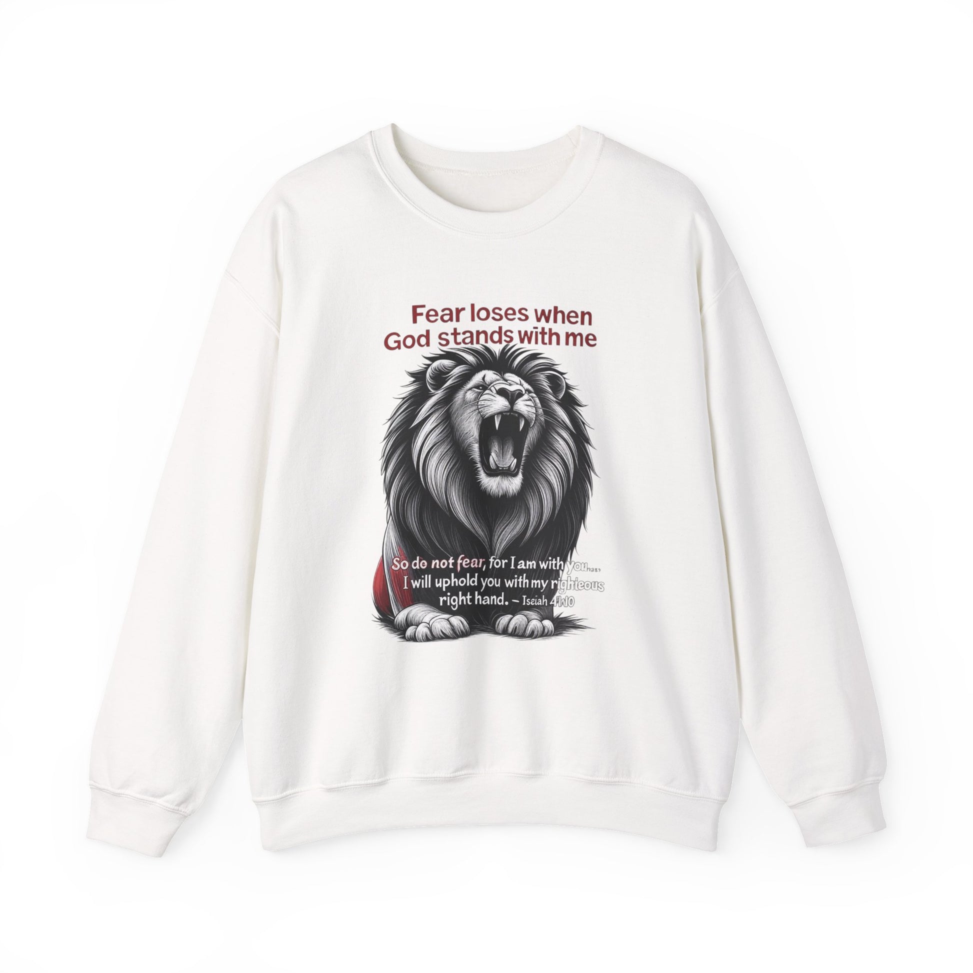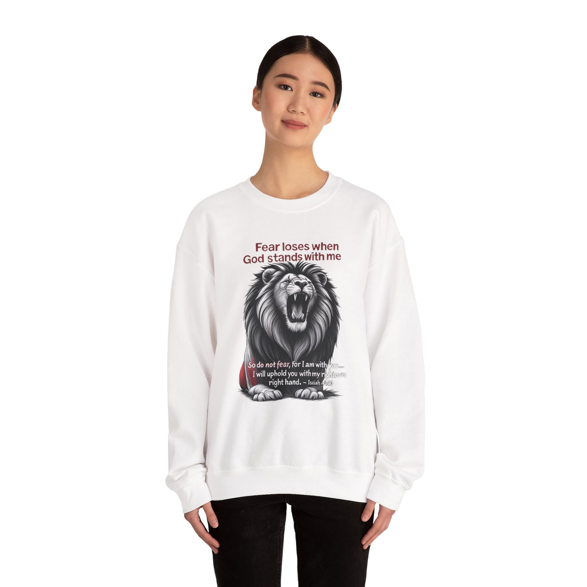 Embrace comfort and inspiration with this cozy unisex heavy blend™ crewneck sweatshirt. Featuring an empowering design with a powerful lion and a motivational quote, this sweatshirt serves as a daily reminder of strength and courage. Its soft fabric blend ensures a warm and relaxed fit, making it ideal for chilly days or cozy nights in. Perfect for anyone seeking comfort with a meaningful message, this sweatshirt is especially relevant for holidays like Christmas, as well as for everyday wear to express personal beliefs or simply to enjoy a fashionable look. Whether you're lounging at home, meeting friends, or heading out for a casual outing, this piece effortlessly blends style and comfort into your life.