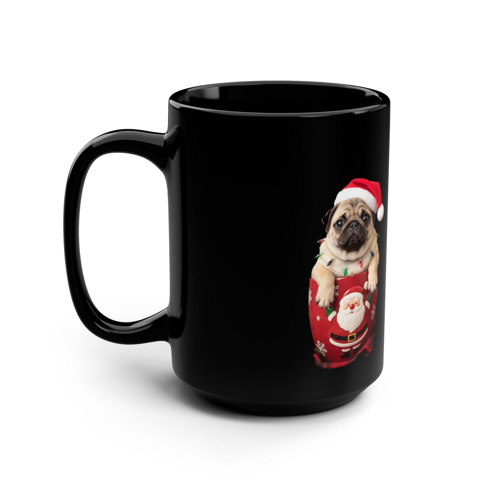 Experience warmth and cheer with this stylish black ceramic mug. Perfectly sized at 15oz, it effortlessly combines functionality with a playful design featuring a festive pug in a Santa hat. Ideal for cozy mornings or holiday gatherings, this mug brings a smile to your face as you sip your favorite beverages. Its glossy finish adds a touch of elegance, making it a fantastic gift for dog lovers, coffee aficionados, or anyone who enjoys a bit of festive fun. Great for Christmas celebrations, winter festivities, or simply brightening up your daily routine.