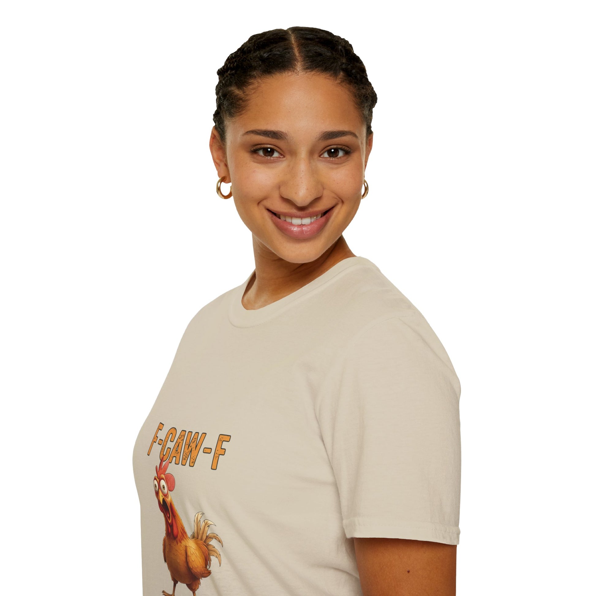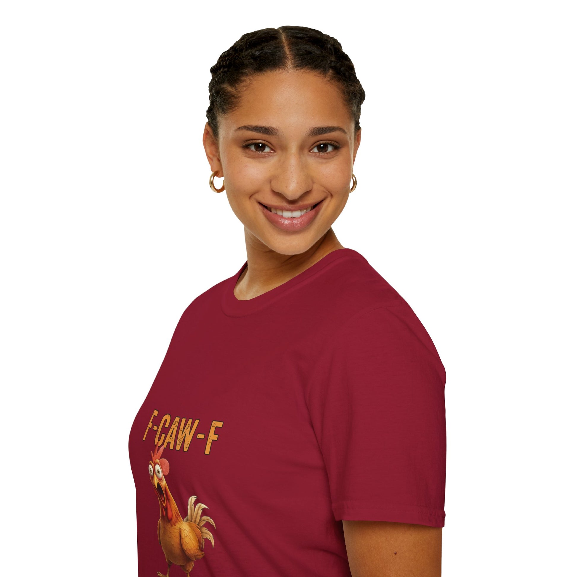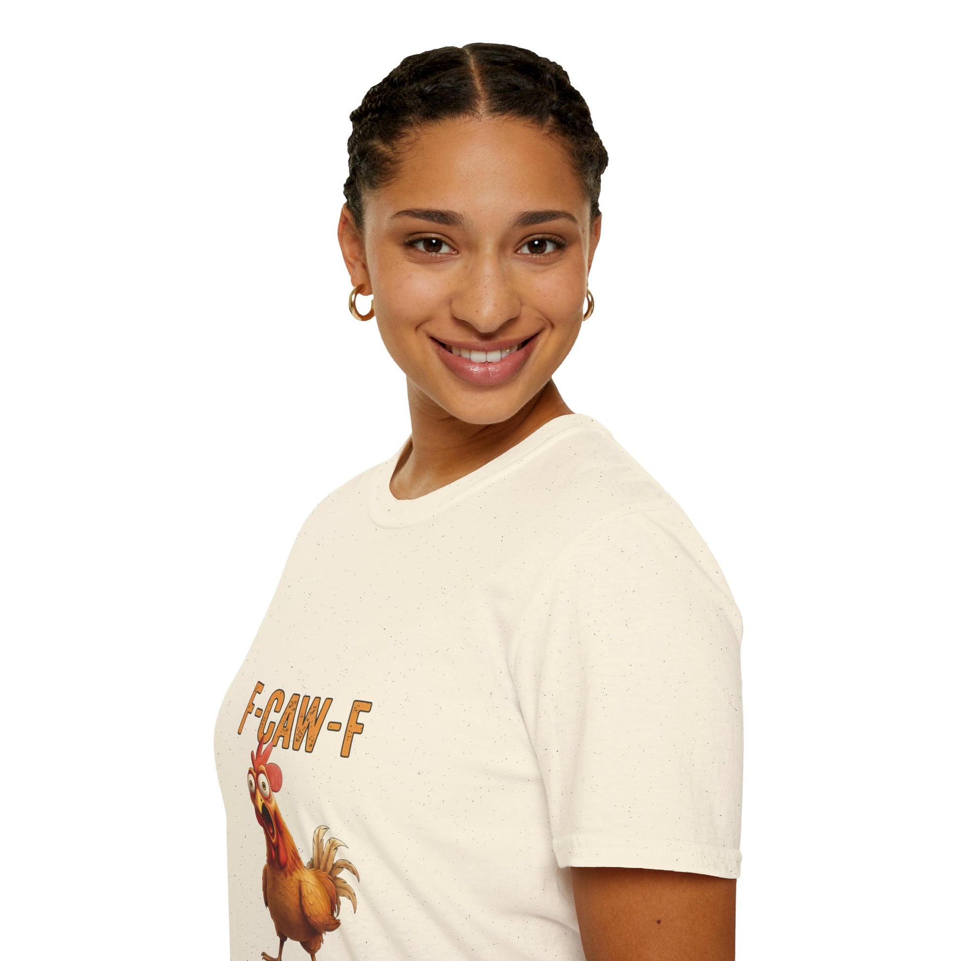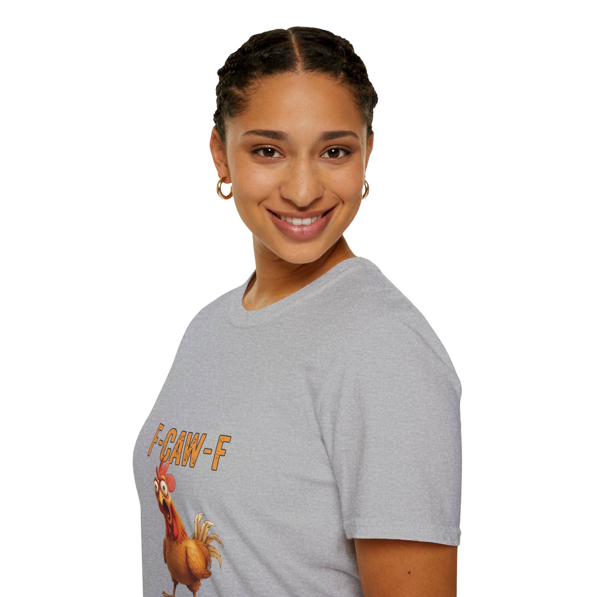 Funny Chicken T-Shirt, Unisex Softstyle Tee, F-Caw-F Humor Shirt, Gift for Animal Lovers, Cute Farm Animal Apparel