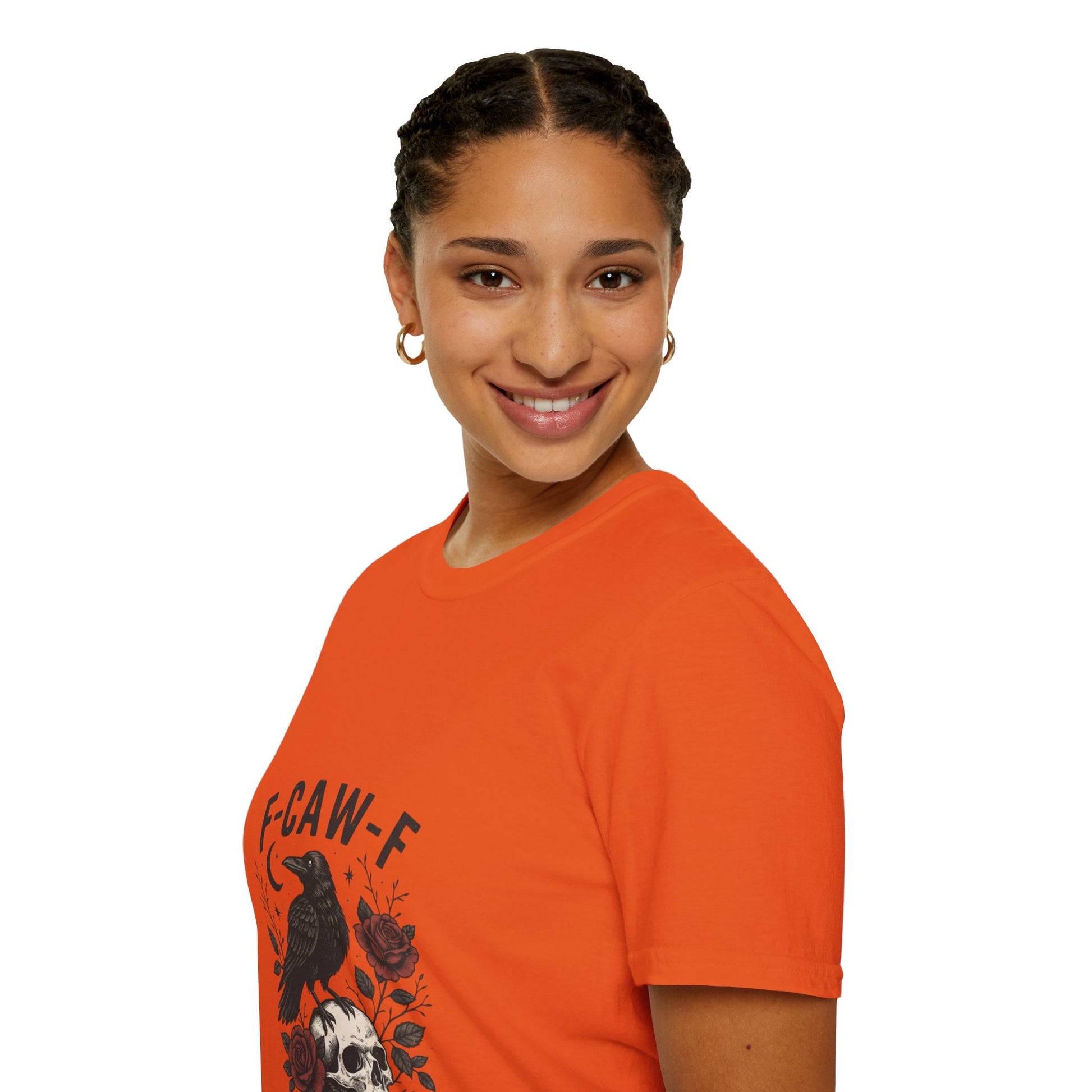 This unisex softstyle t-shirt is the perfect blend of comfort and style. Featuring a unique design with a crow and skull motif, it adds a bit of edge to your everyday wardrobe. Made from 100% ring-spun cotton, this lightweight tee feels cool against your skin, making it perfect for all-day wear. Whether you're dressing up for a night out or keeping it casual on a weekend, this shirt is versatile enough to fit any occasion. Great for individuals who appreciate a touch of the macabre, this t-shirt also makes an ideal gift for Halloween, themed parties, or as a quirky addition to your everyday outfits. Celebrate your unique style with our softstyle t-shirt, a staple piece that resonates with those who love to stand out.