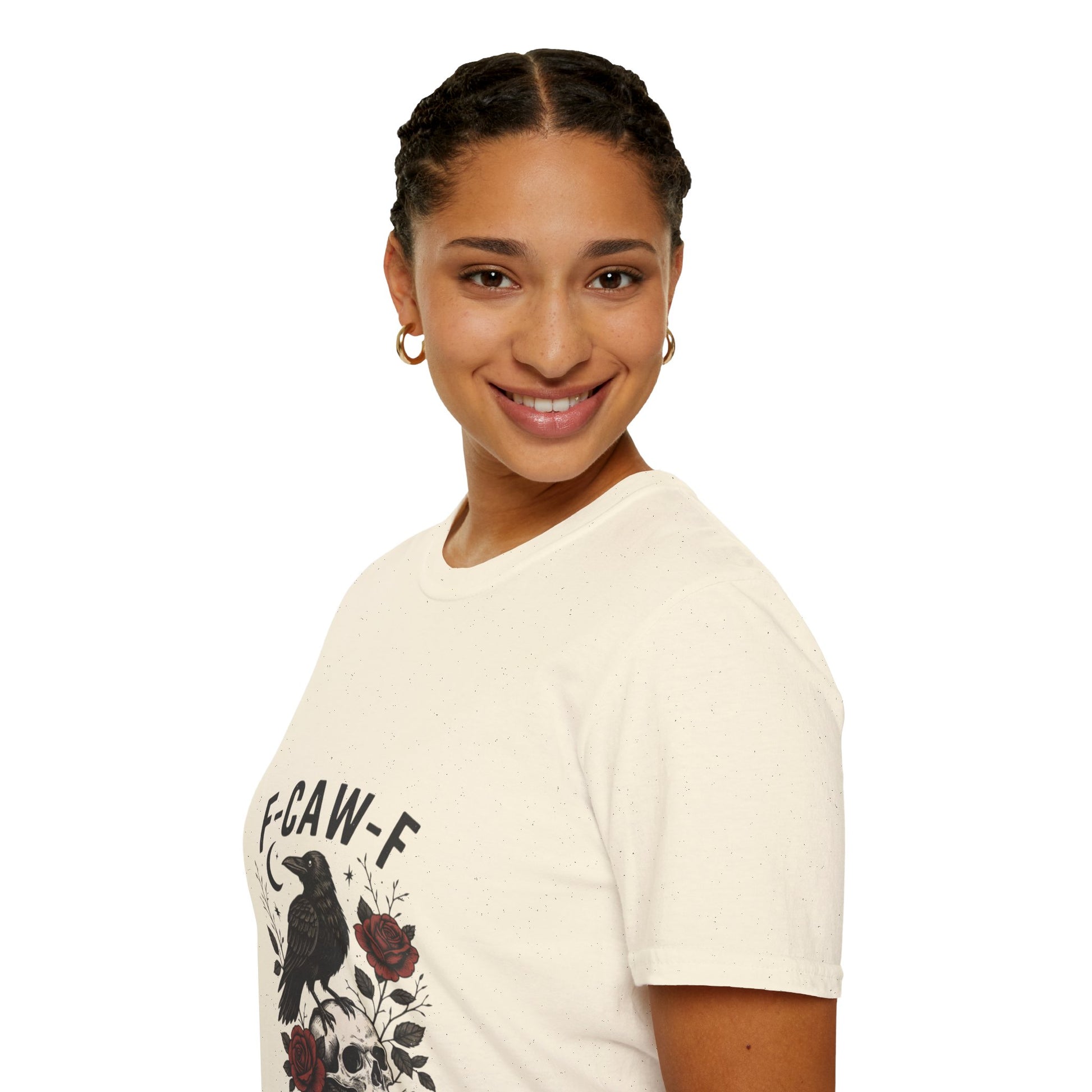 Gothic Raven T-Shirt | Unisex Softstyle Tee, Halloween Wear, Unique Gift, Casual Outfit, Skulls & Roses Design