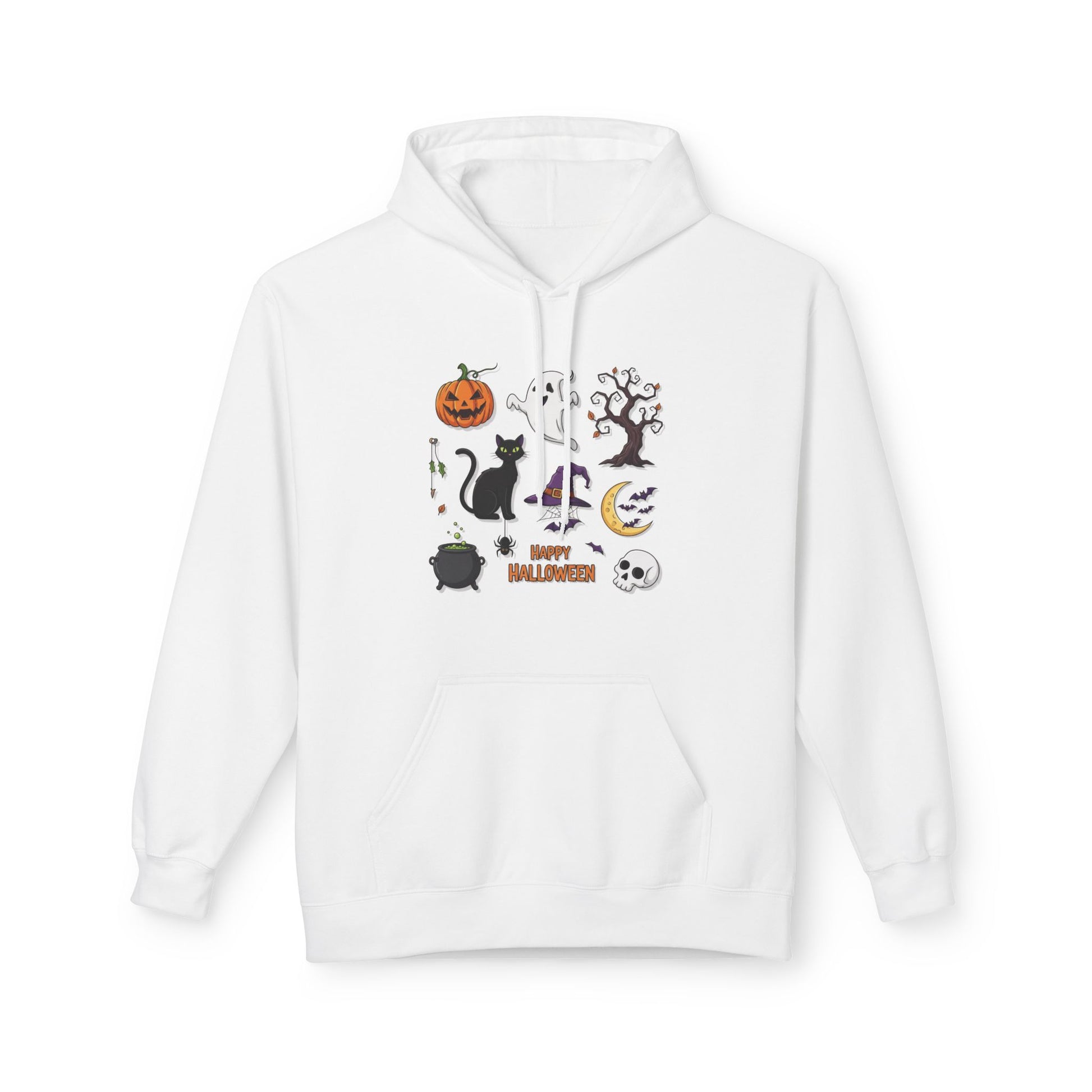 Halloween Cute Cat Fleece Hoodie, Spooky Season Apparel, Unisex Sweatshirt, Fall Fashion, Cozy Gift for Halloween Lovers