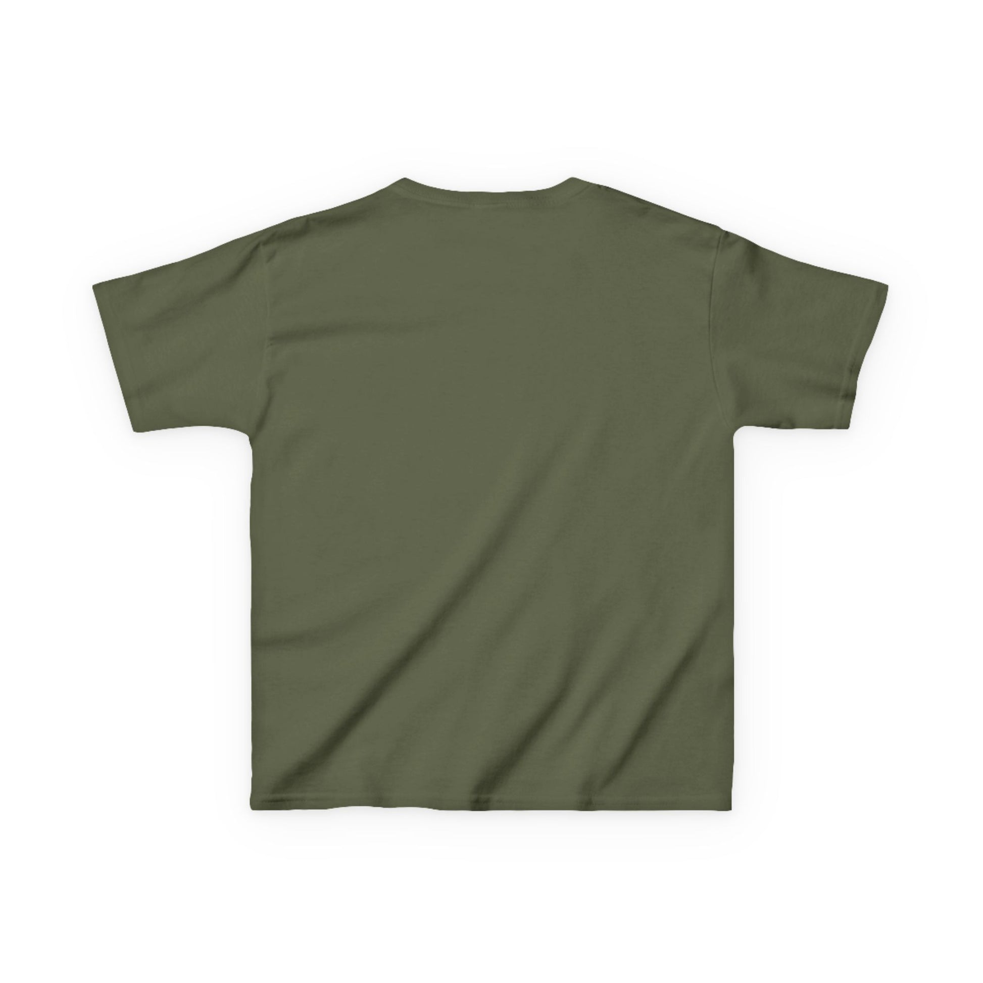 The kids heavy cotton tee is perfect for everyday use. The fabric is 100% cotton for solid colors. Polyester is included for heather-color variants. These fabrics are prime materials for printing. The shoulders have twill tape for improved durability. The collar is curl resistant due to ribbed knitting. There are no seams along the sides.