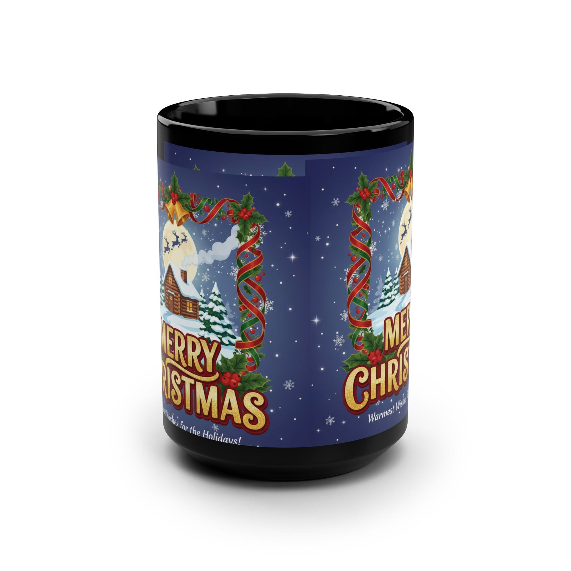 Merry Christmas Holiday Mug, Festive Coffee Cup for Christmas Gift, Seasonal Drinkware, 15oz Black Mug for Celebrations