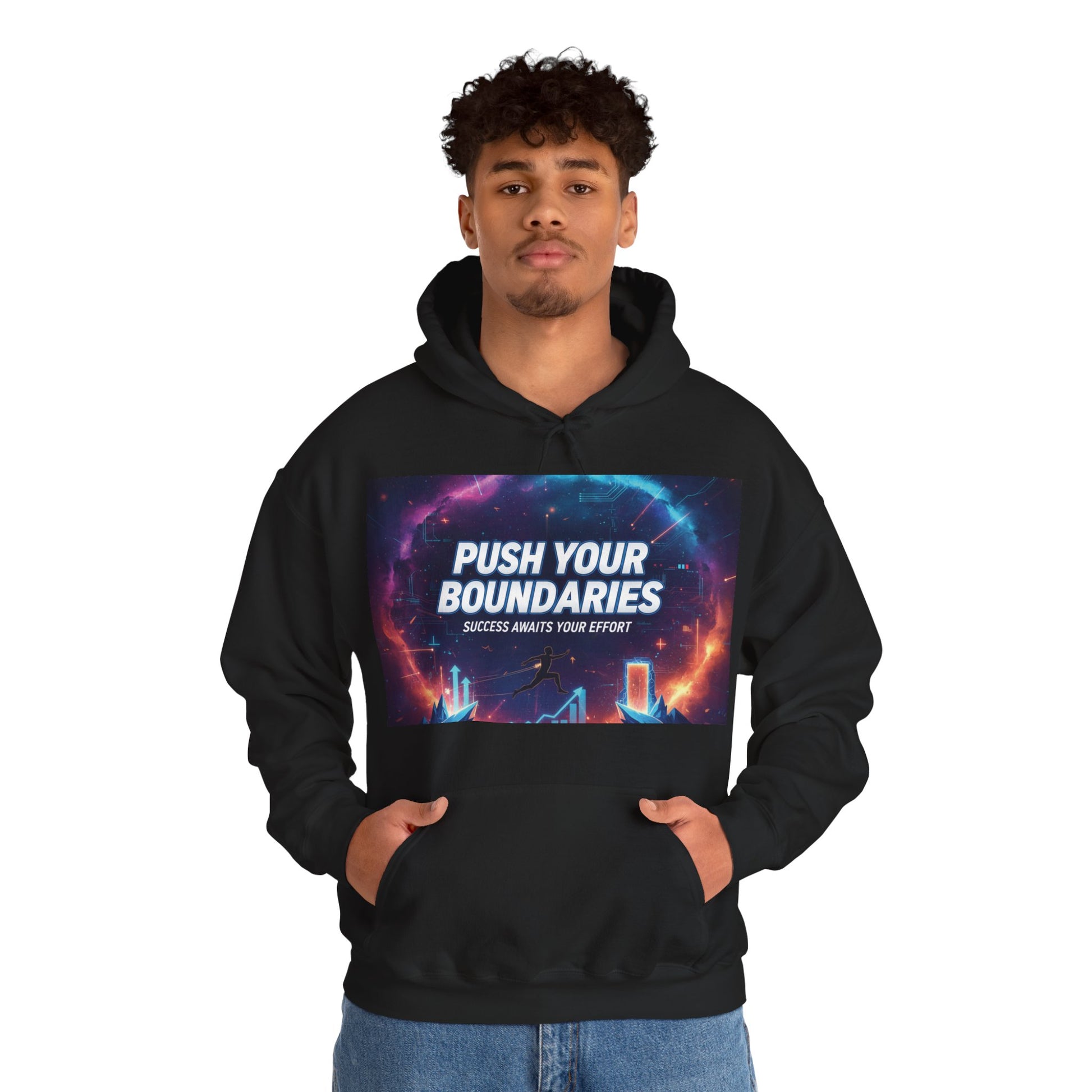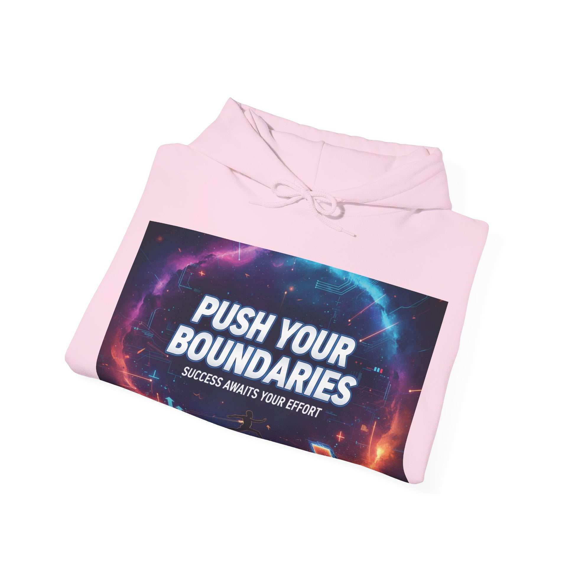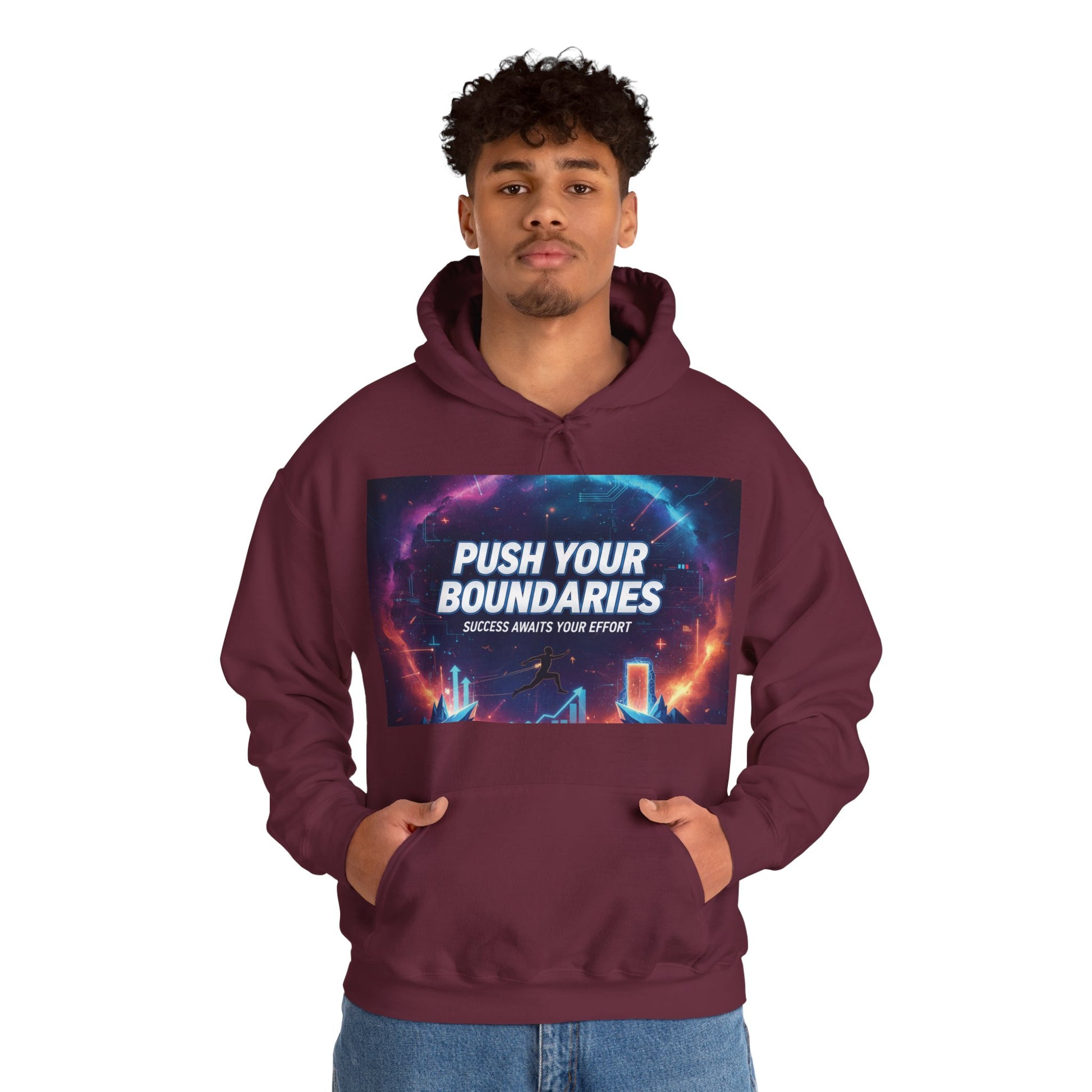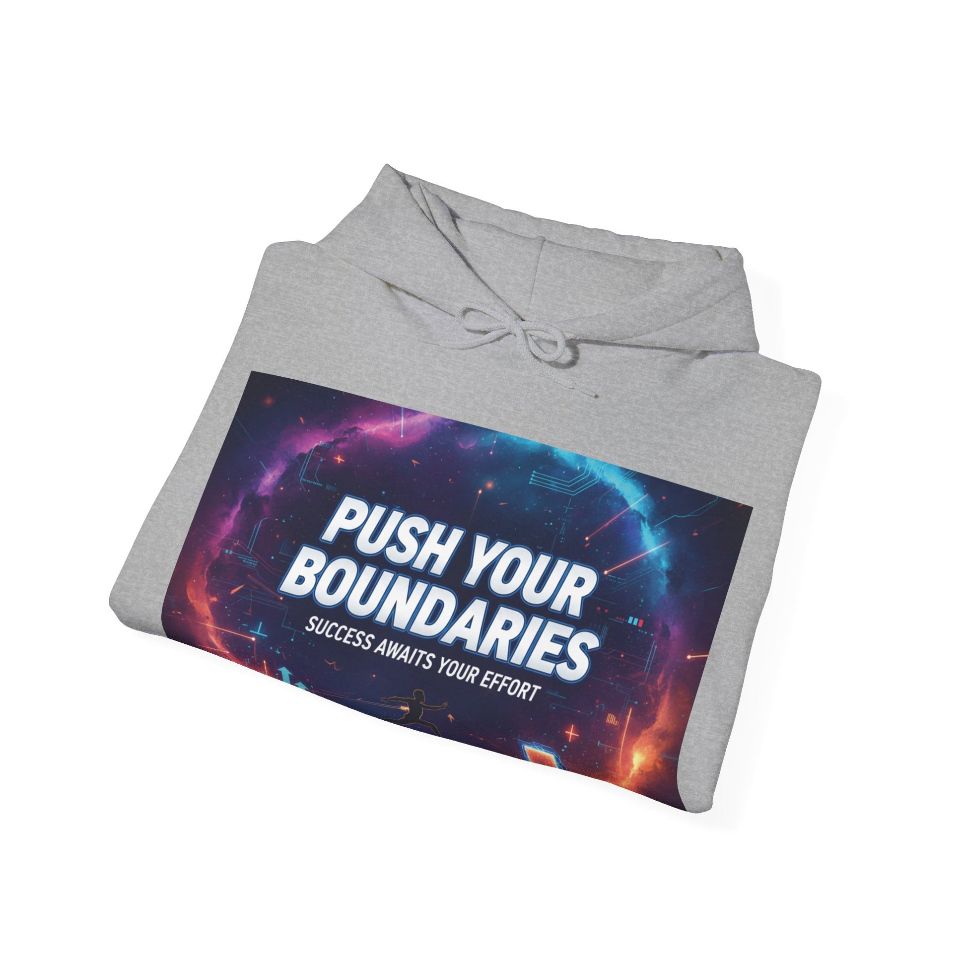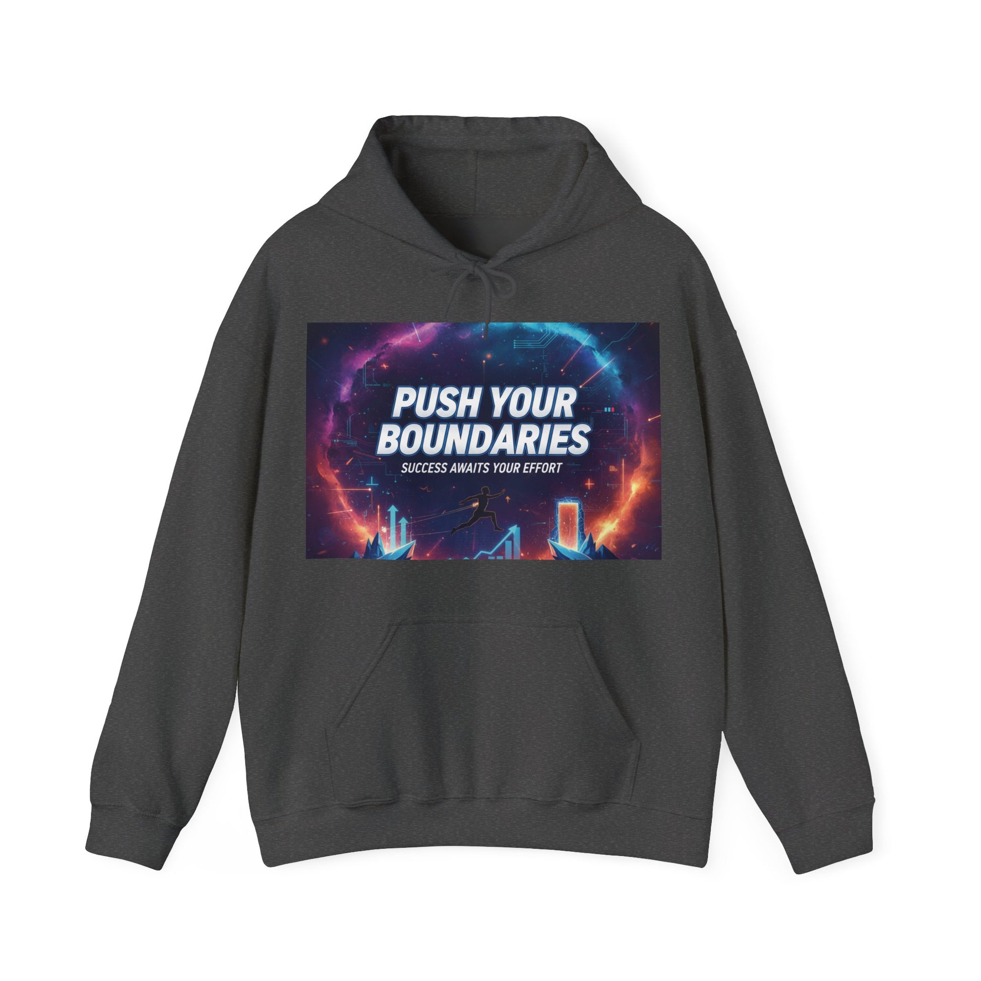 Motivational Graphic Hoodie, Push Your Boundaries Sweatshirt, Gift for Entrepreneurs, Cozy Layer for Success, Inspirational Apparel