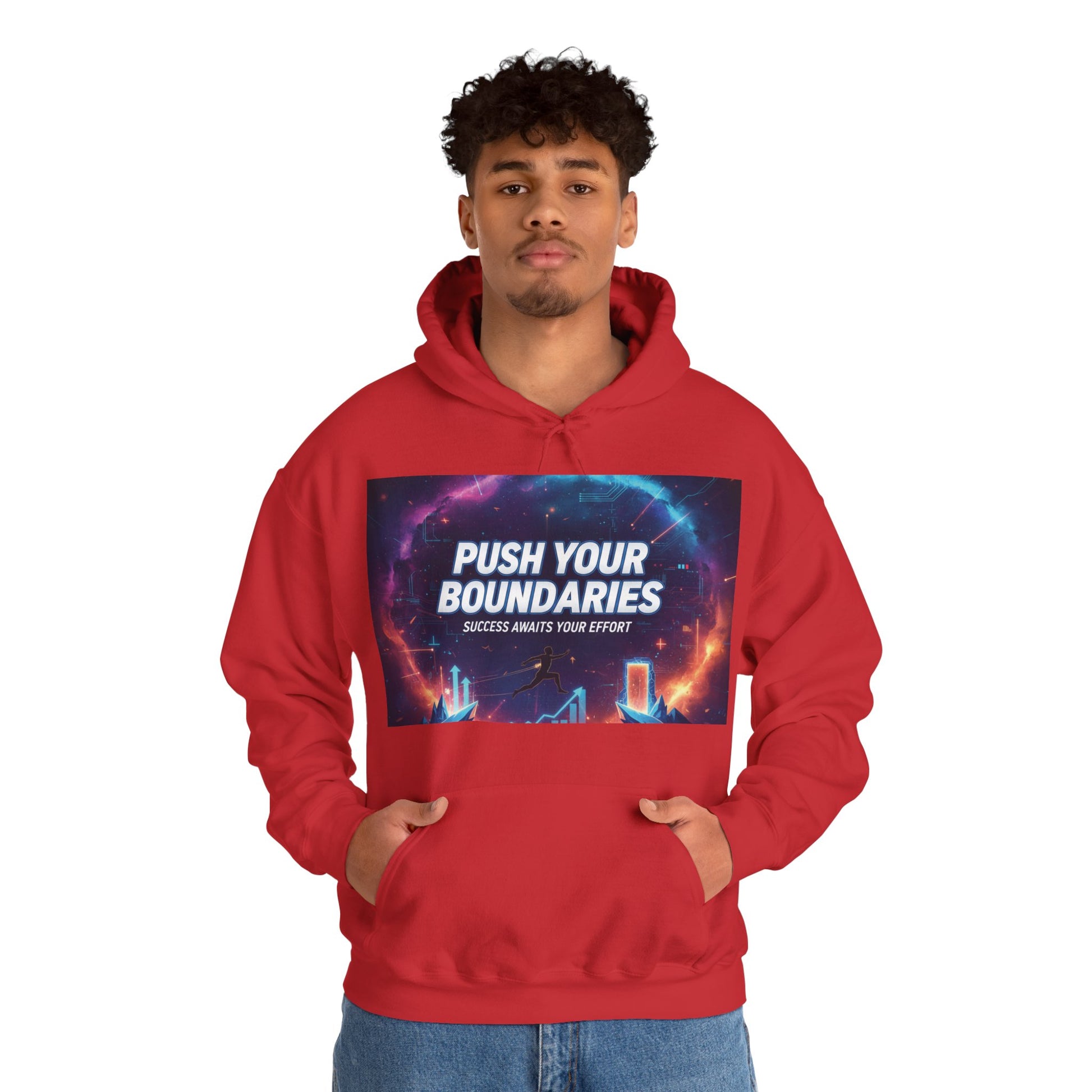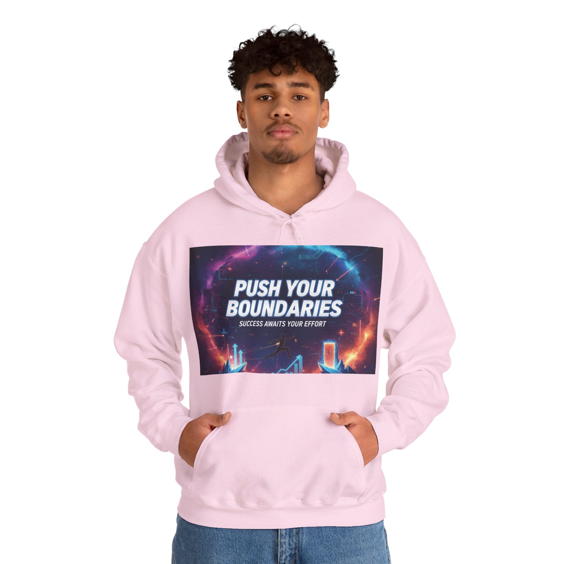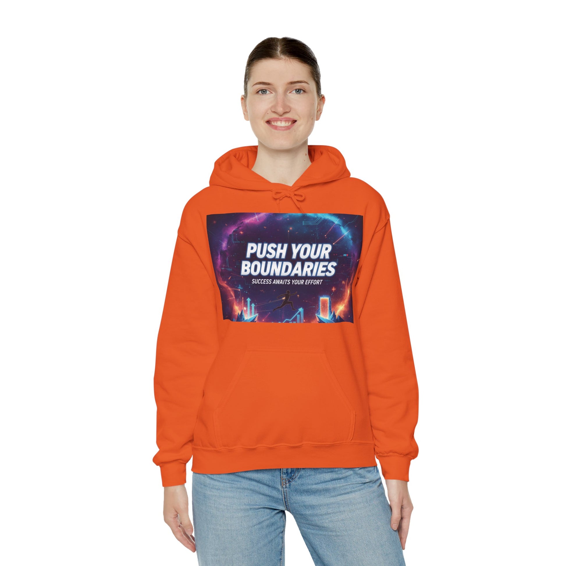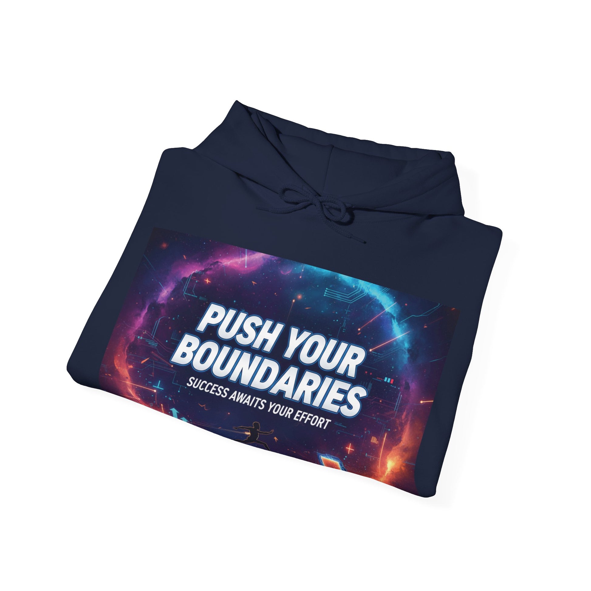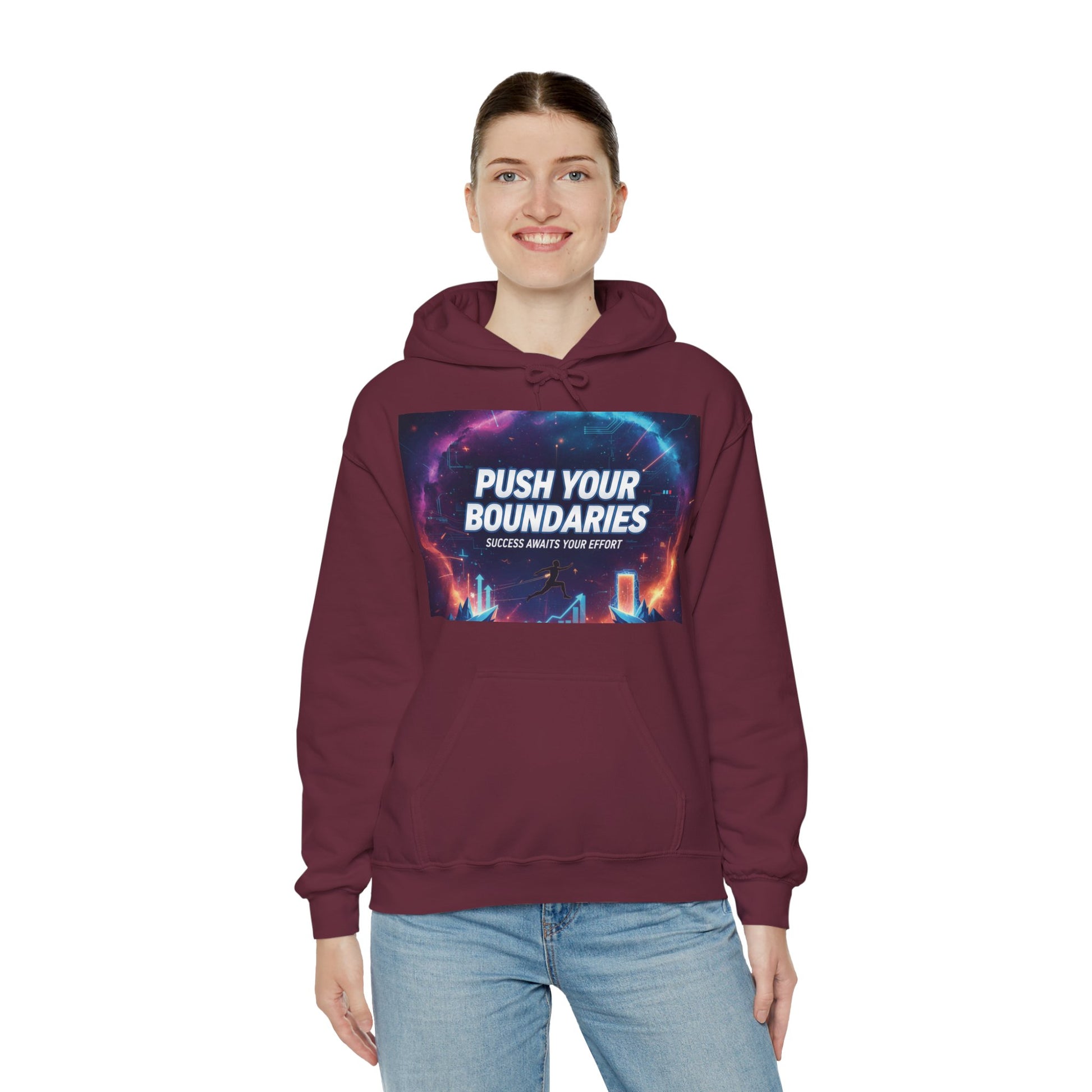 Motivational Graphic Hoodie, Push Your Boundaries Sweatshirt, Gift for Entrepreneurs, Cozy Layer for Success, Inspirational Apparel