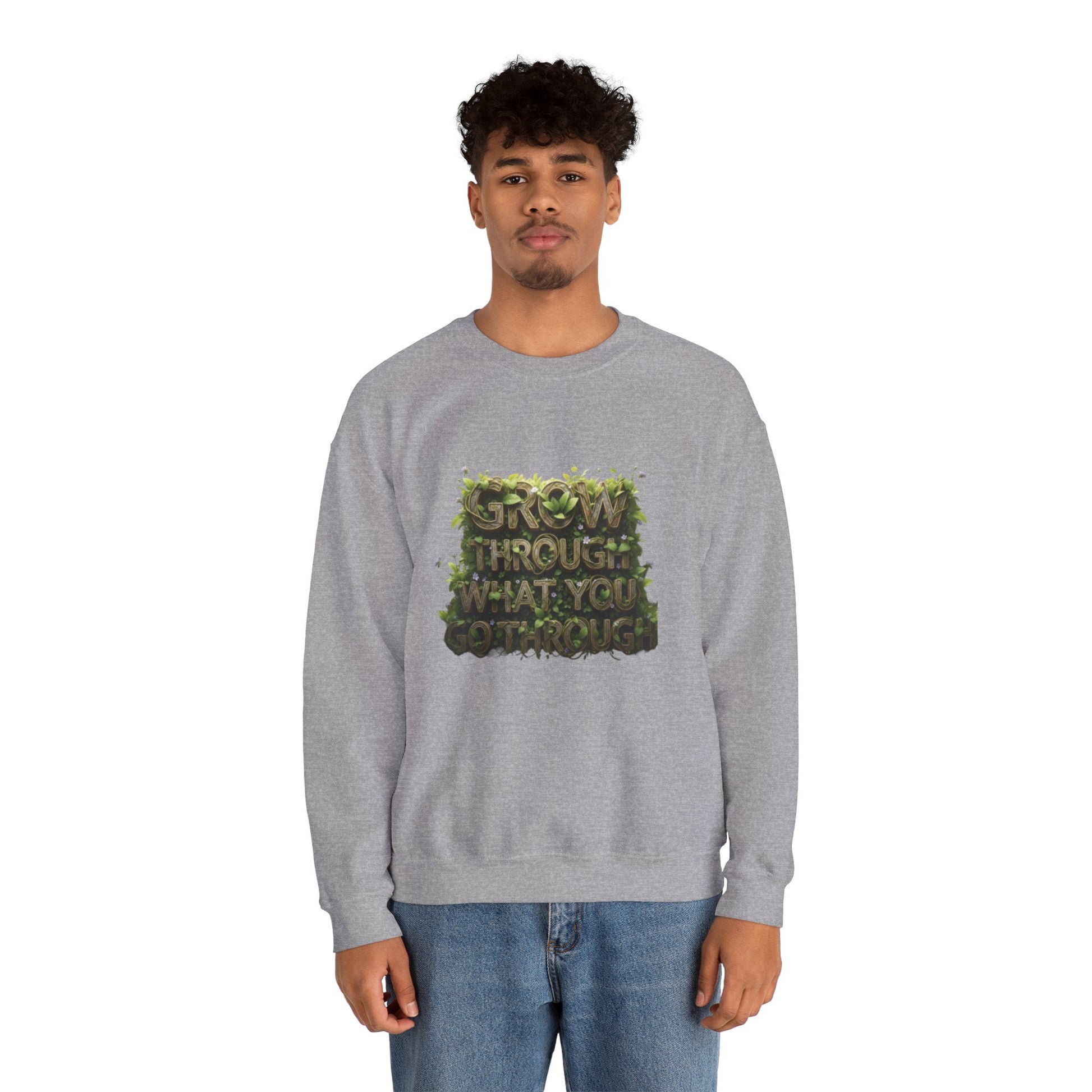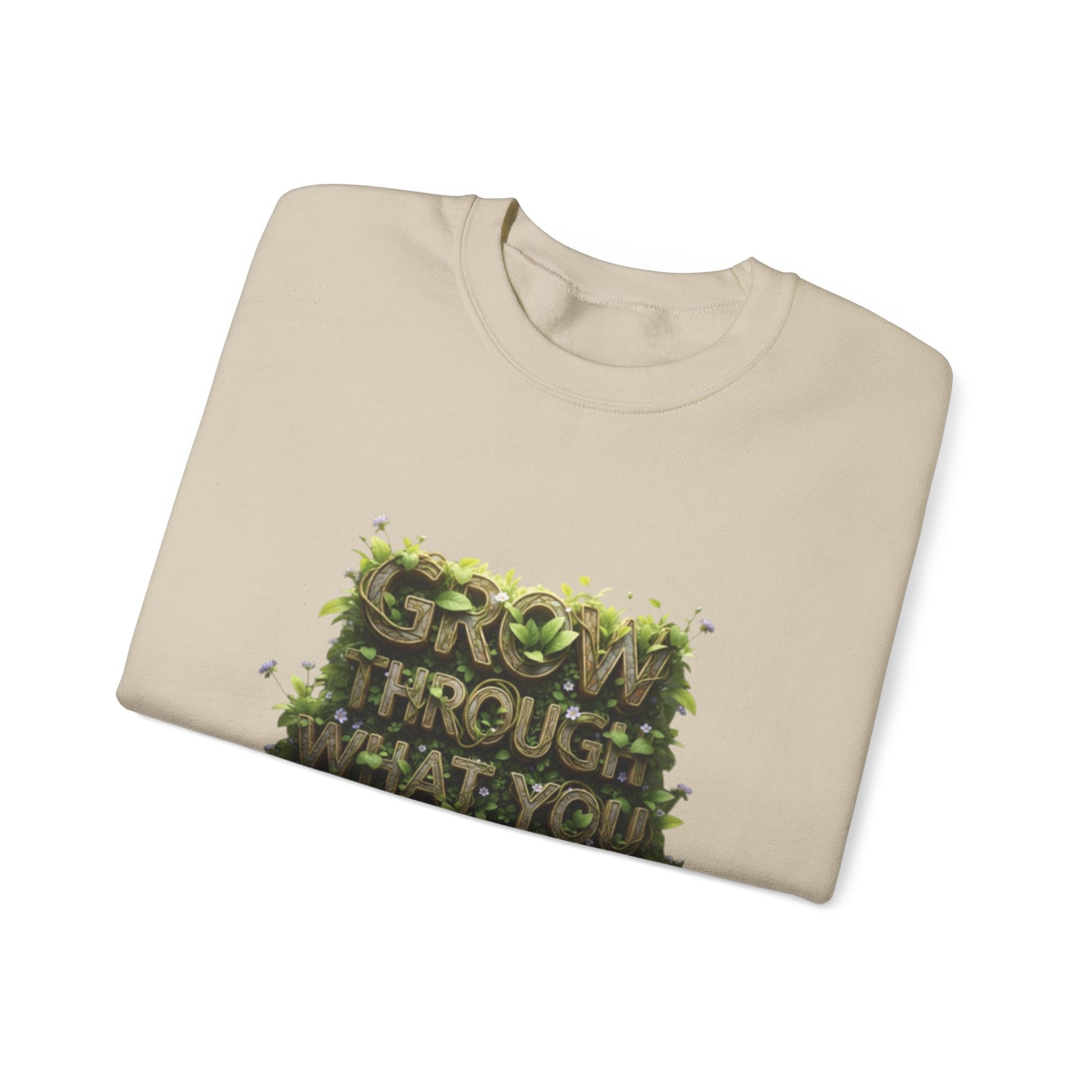 Nature-Inspired Motivational Sweatshirt, 'Grow Through What You Go Through' Crewneck, Cozy Gift for Nature Lovers