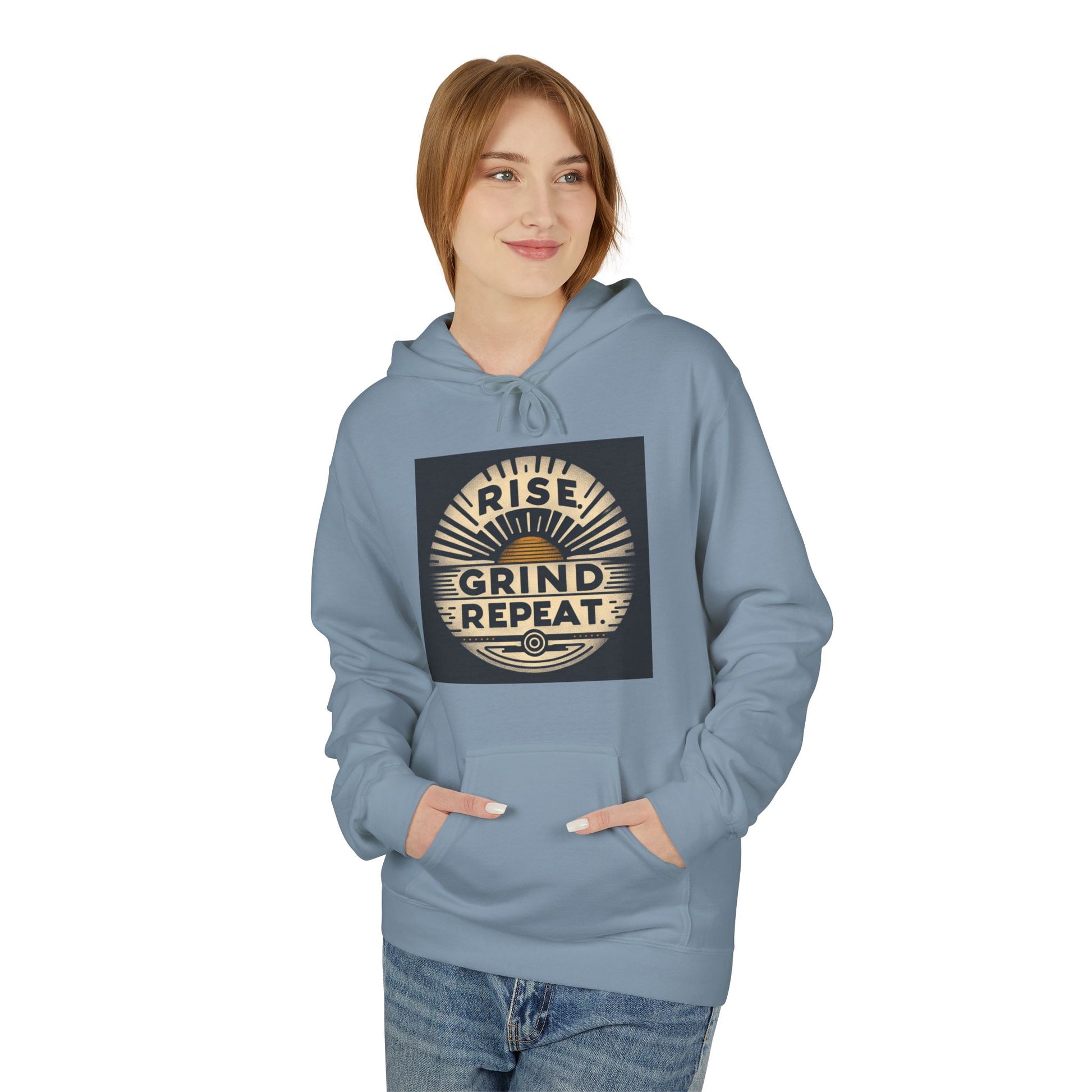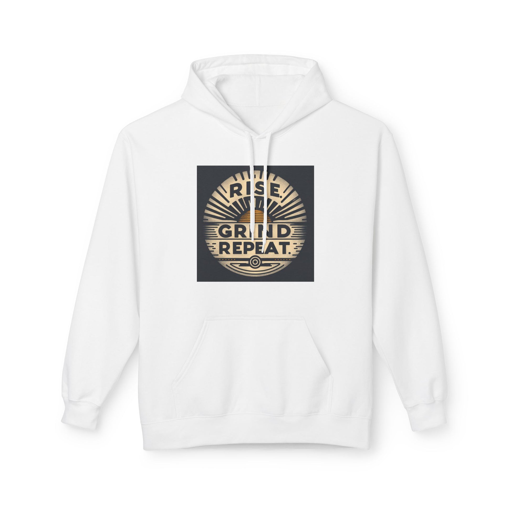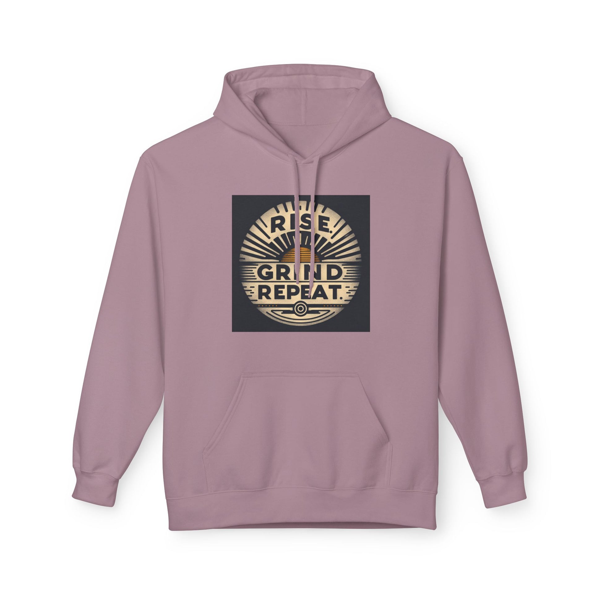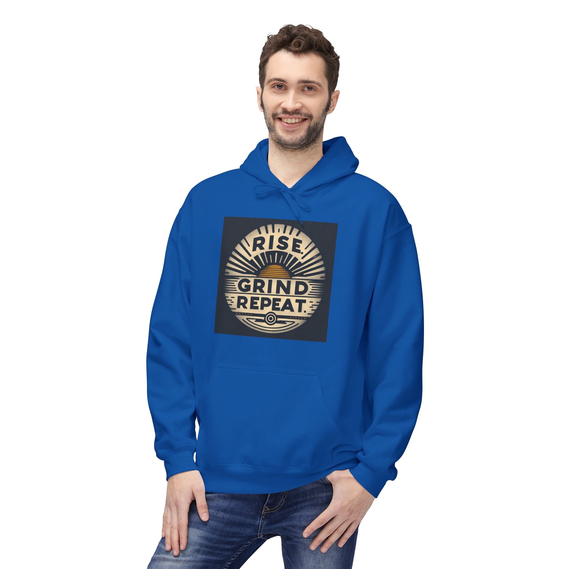 Rise, Grind, Repeat Motivational Fleece Hoodie - Unisex Crew Neck Sweatshirt for Gym, Fitness, Workout, Casual, Gift