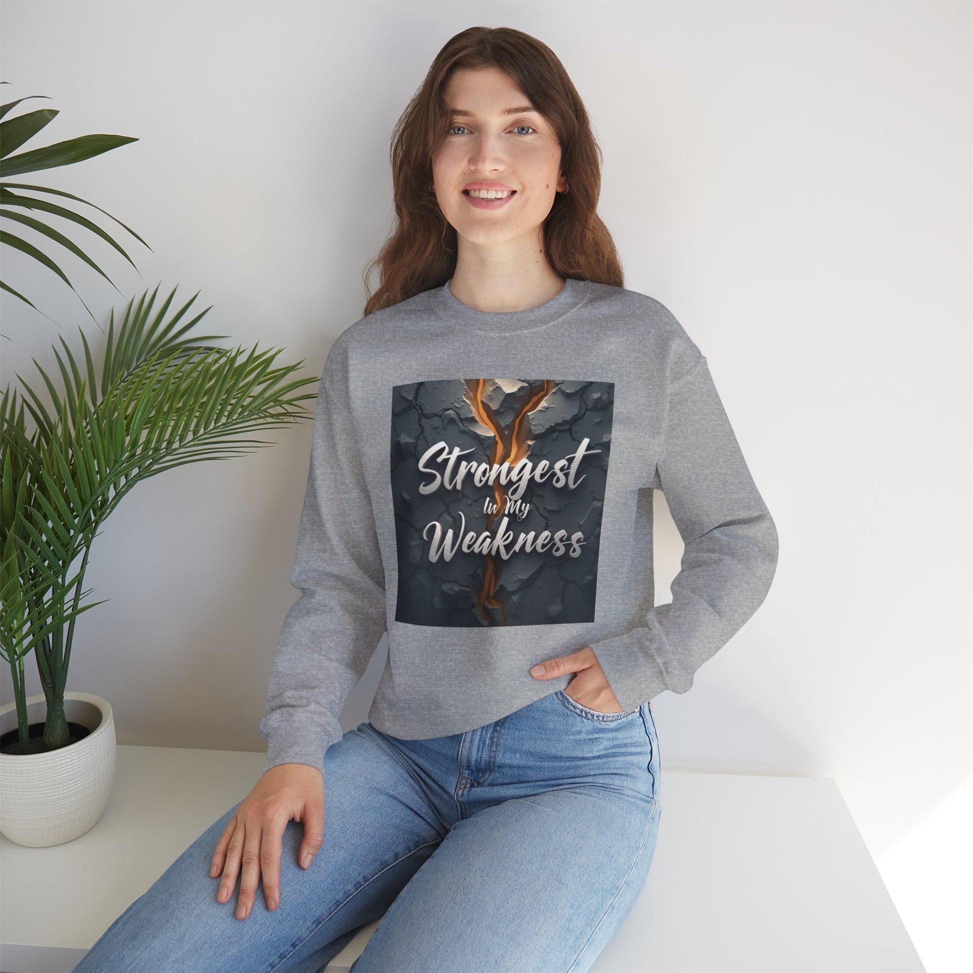 Strongest in My Weakness Sweatshirt | Cozy Unisex Crewneck | Inspirational Gift for Friends, Self-Care, Motivational Wear, Warm Layer