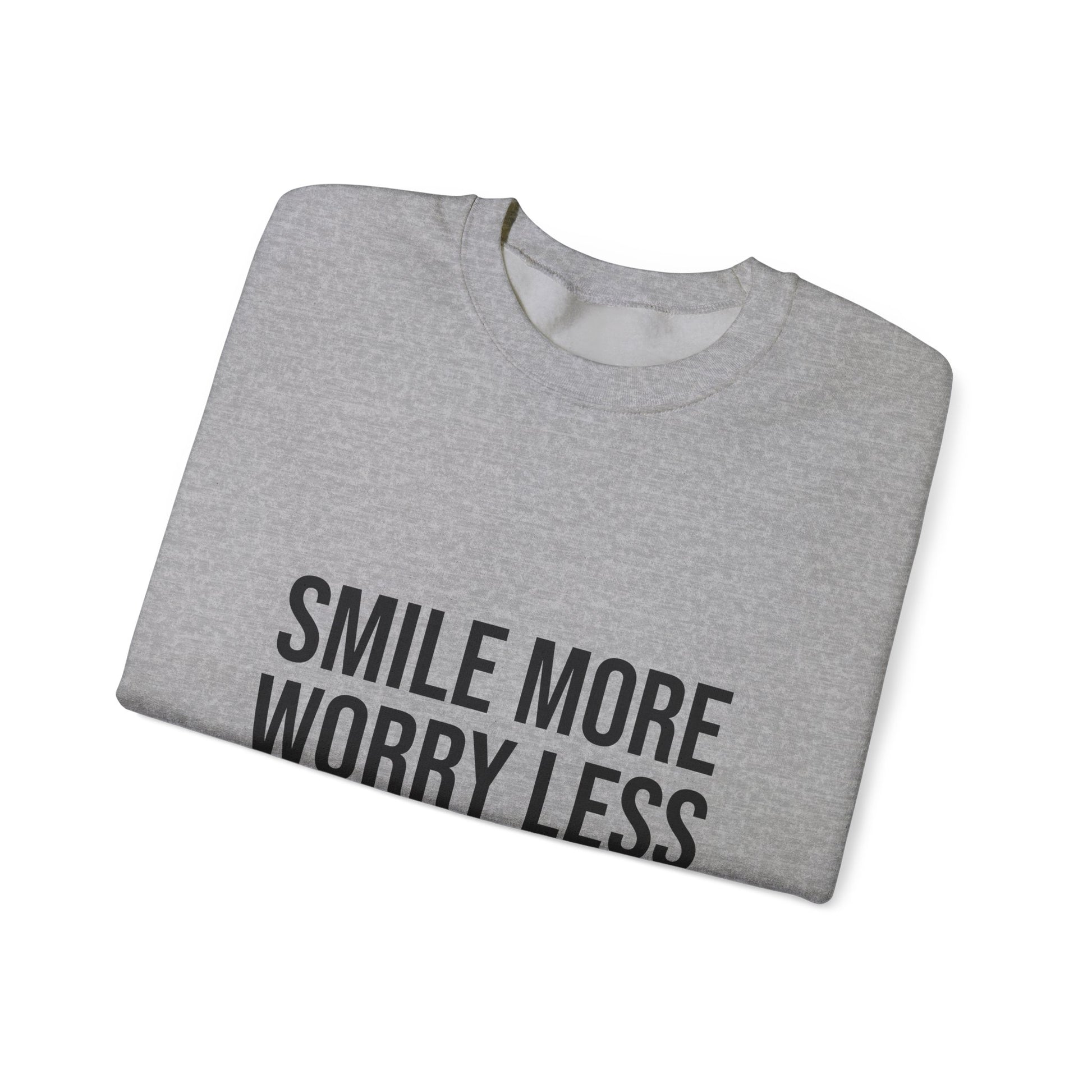 Unisex Inspirational Crewneck Sweatshirt - Smile More Worry Less, Cozy Gift for Friends, Relaxed Style, Casual Wear, Positive Vibes