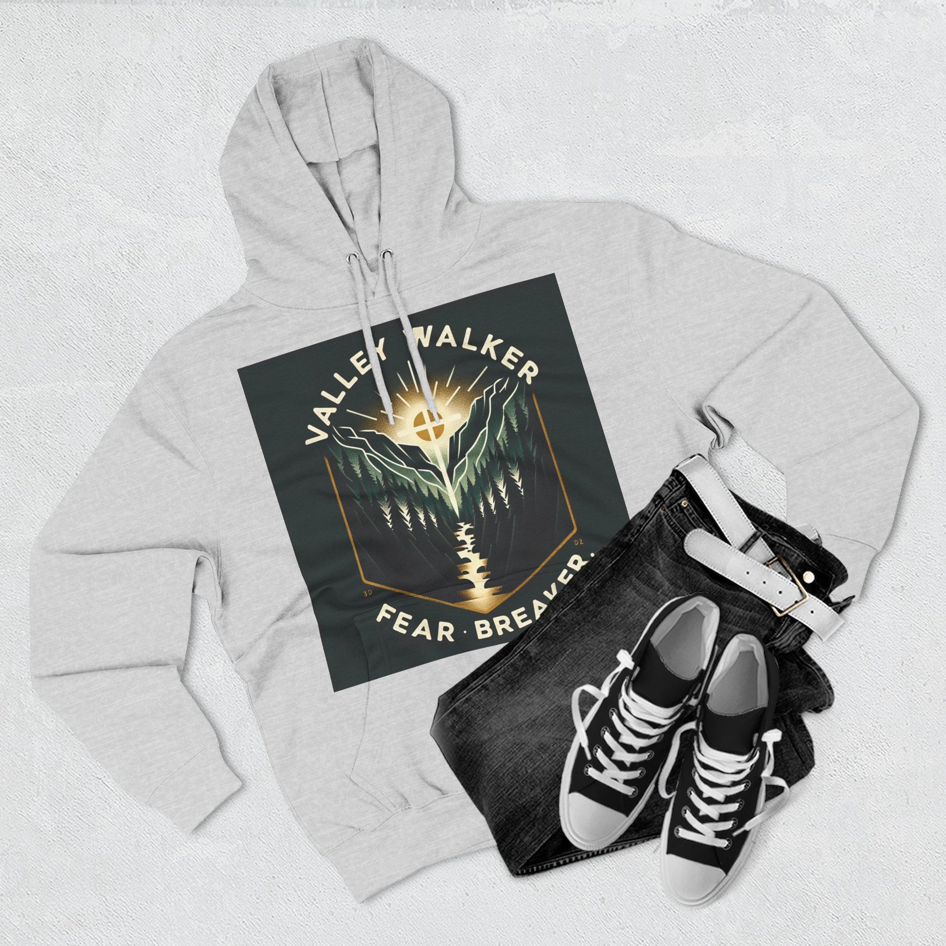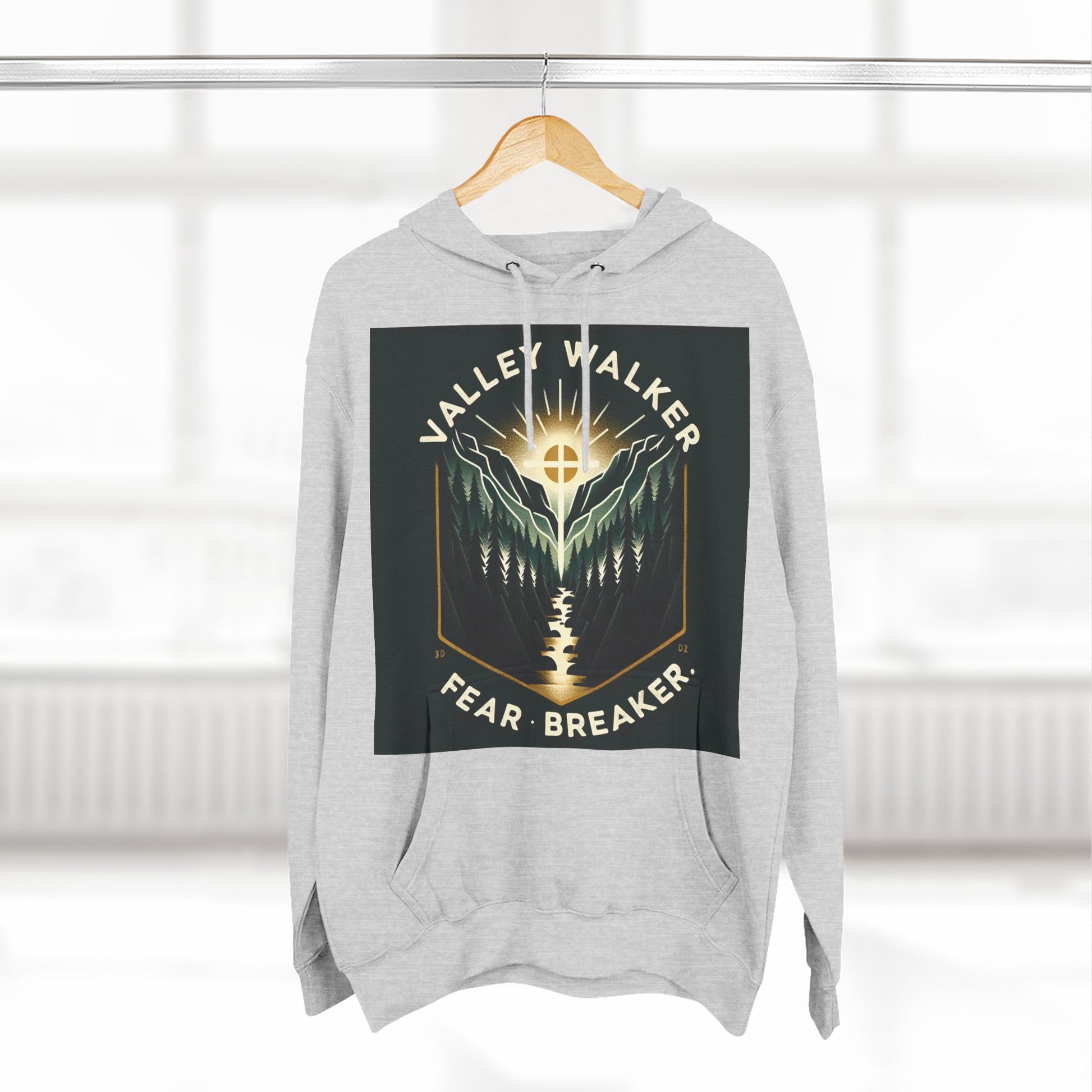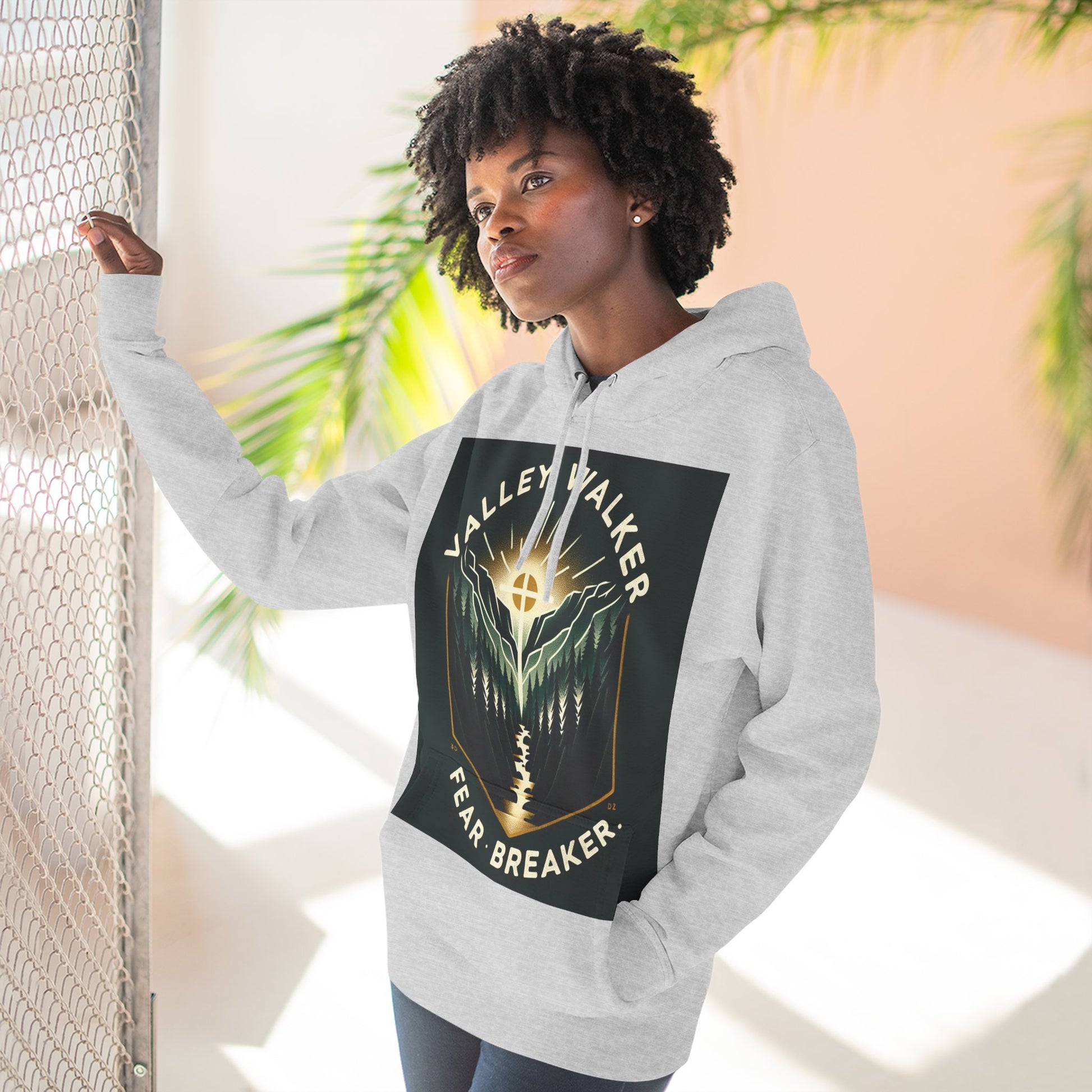 Valley Walker Fleece Hoodie - Fear Breaker, Cozy Hoodie, Inspirational Sweatshirt, Nature Lover Gift, Adventure Apparel