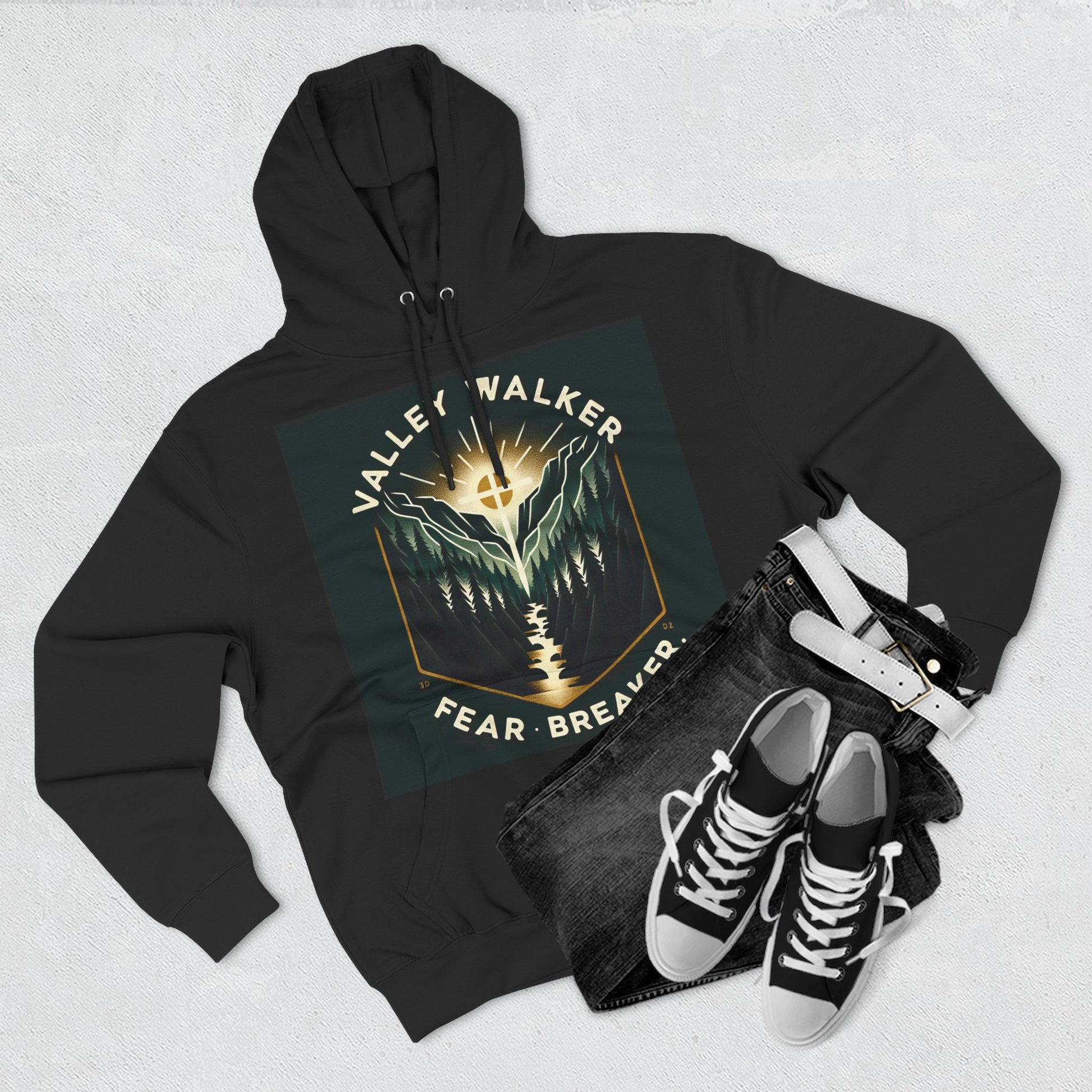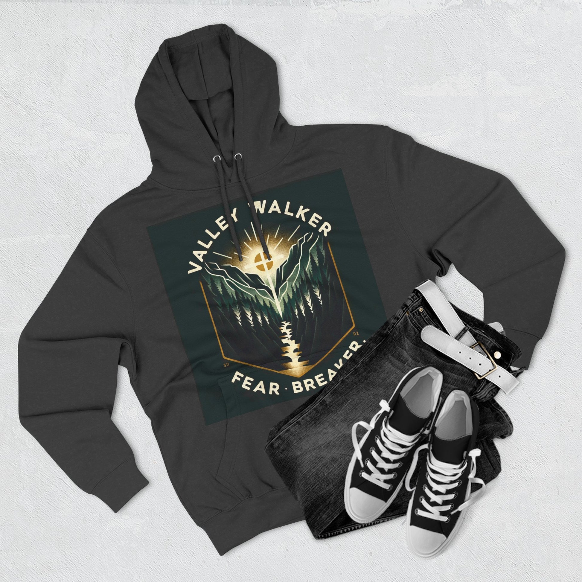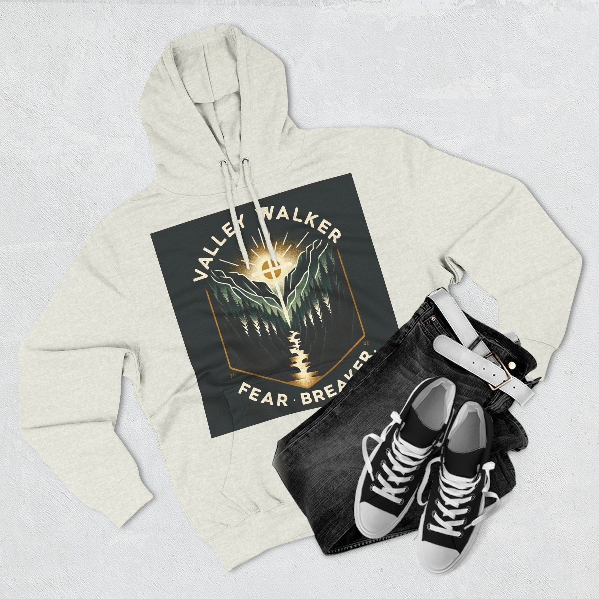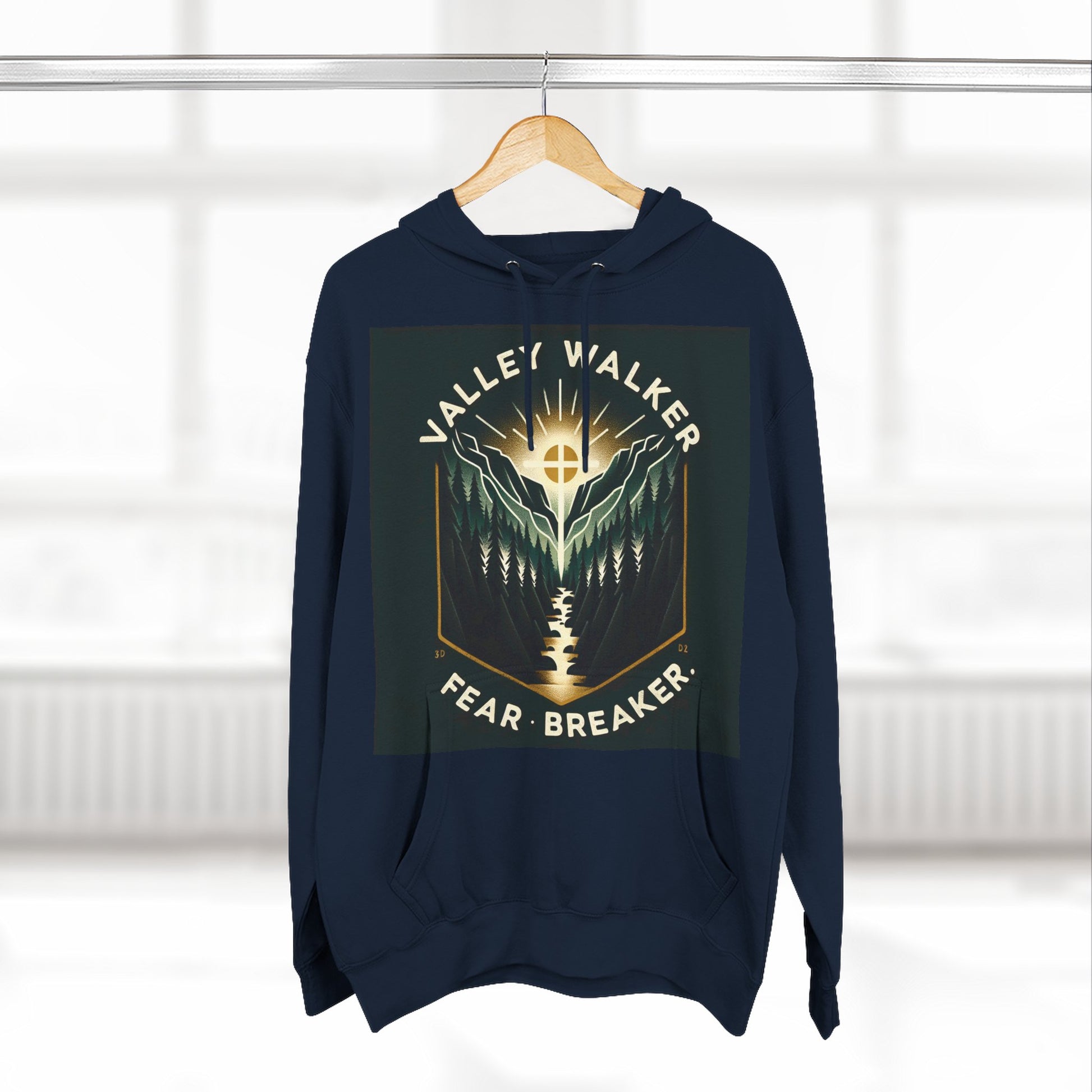 Valley Walker Fleece Hoodie - Fear Breaker, Cozy Hoodie, Inspirational Sweatshirt, Nature Lover Gift, Adventure Apparel